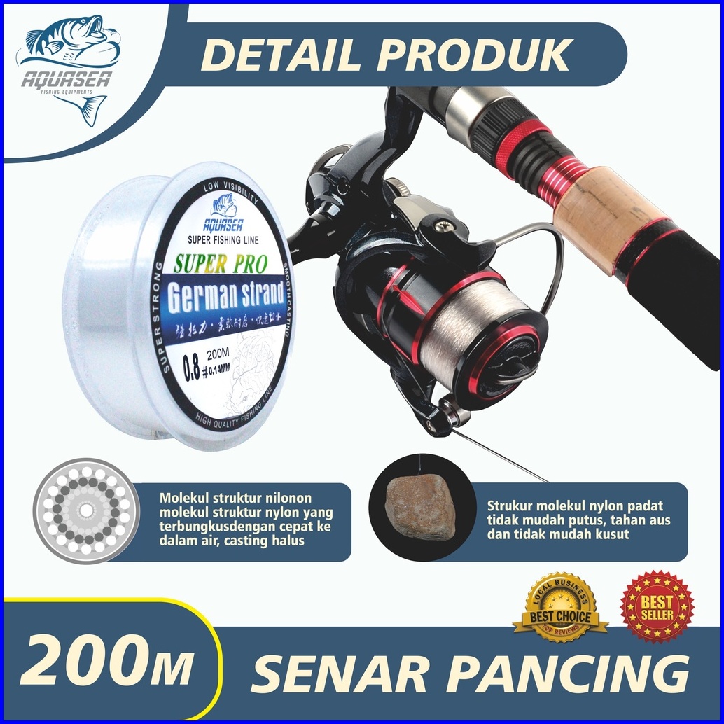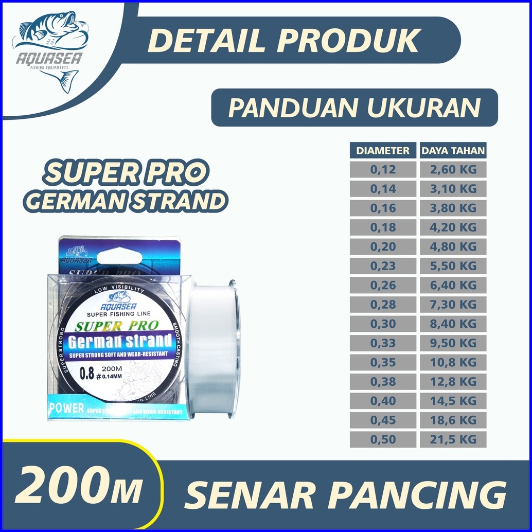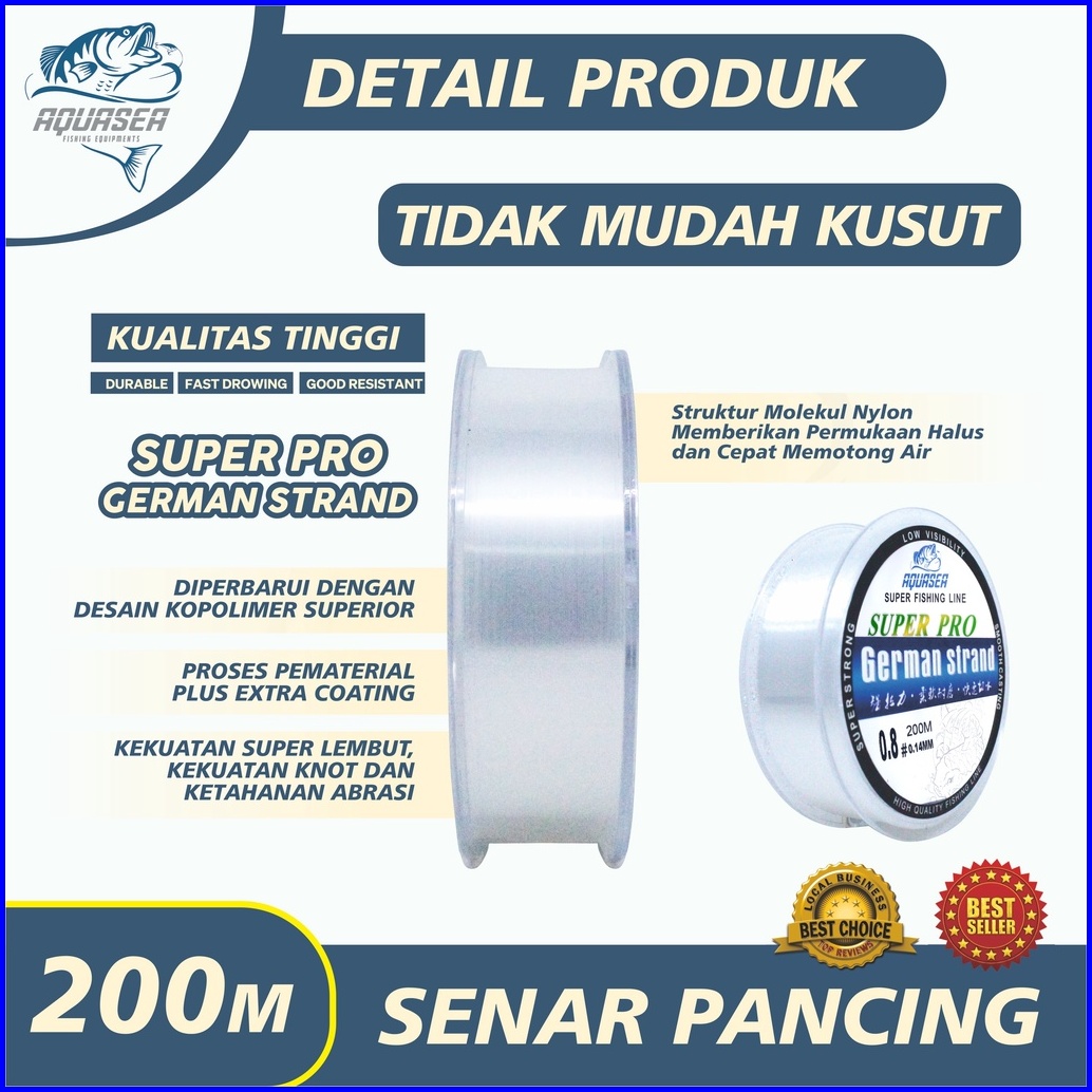 Aquasea Tali Pancing Putih Germany Fishing 200m Pancing Invisible Bahan Nilon Tahan Lama Panjang