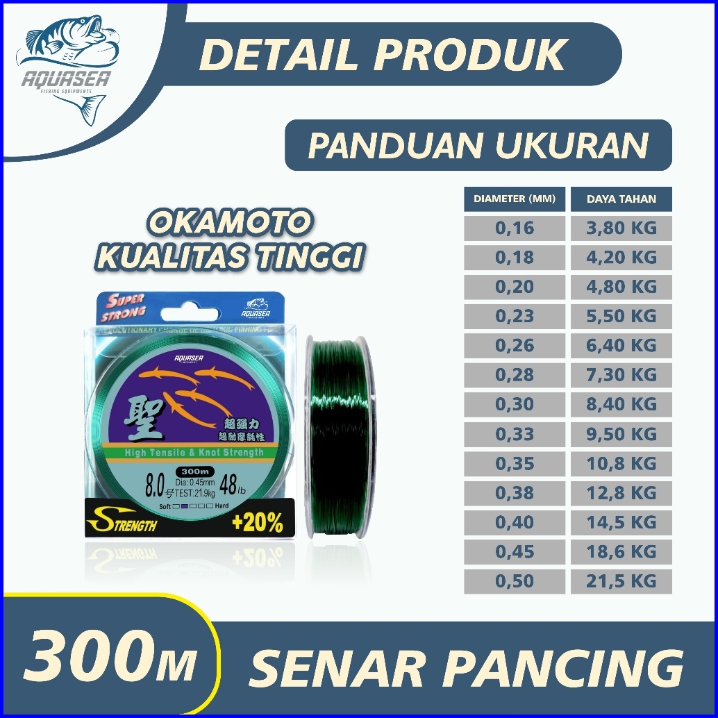 Aquasea Tali Pancing Okamoto Senar Pancing Jepang 300meter Kualitas Premium Original