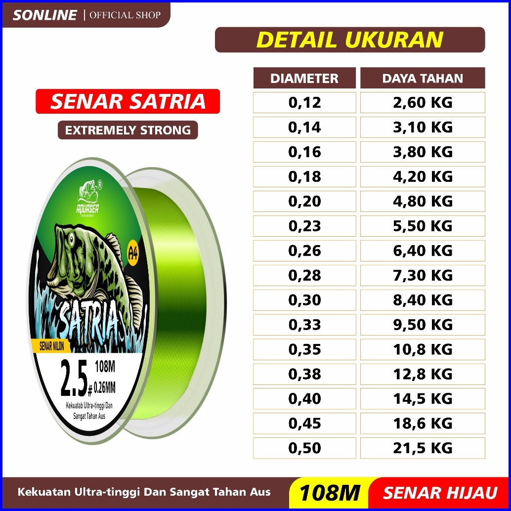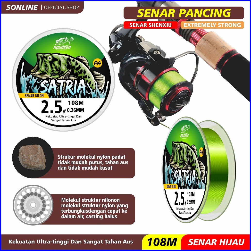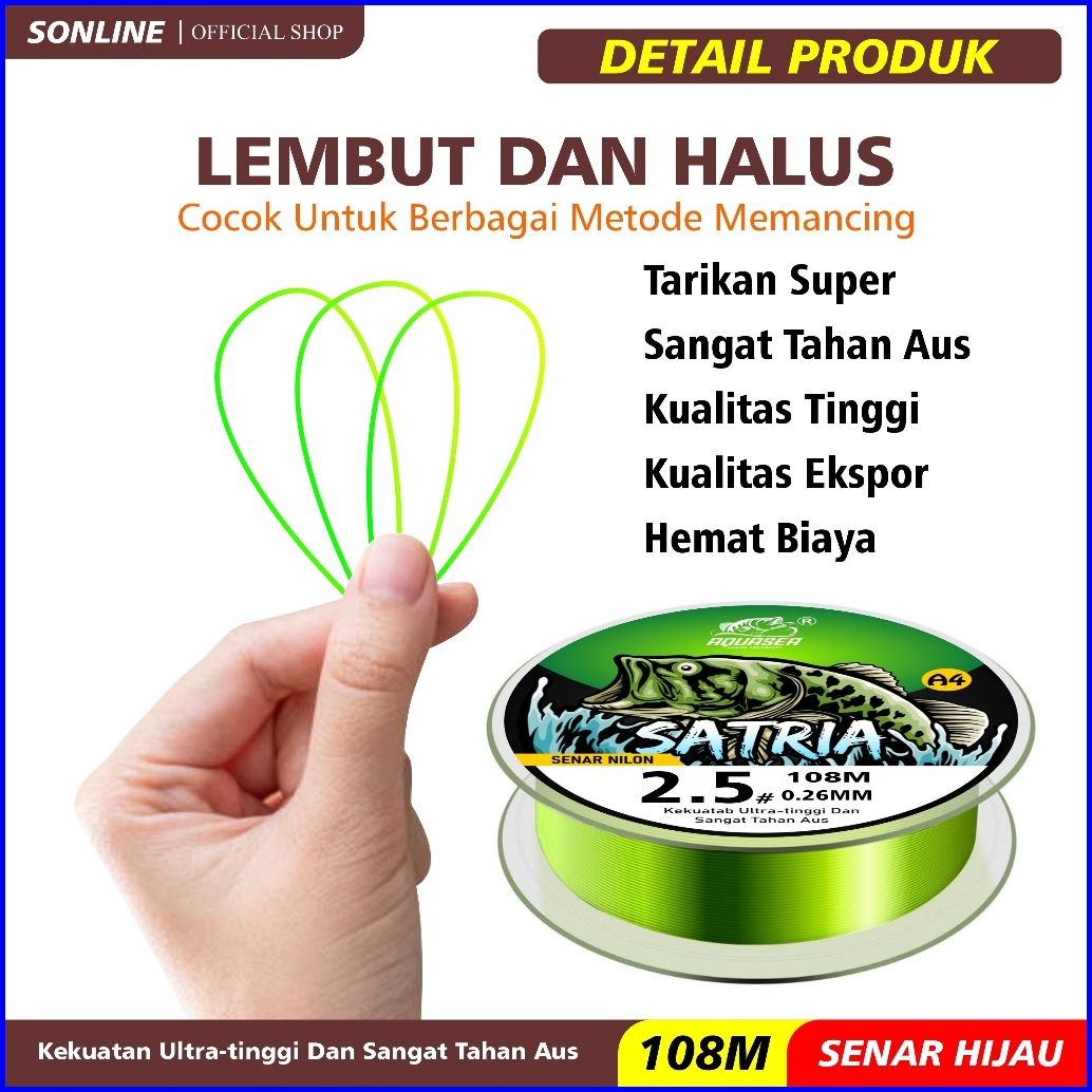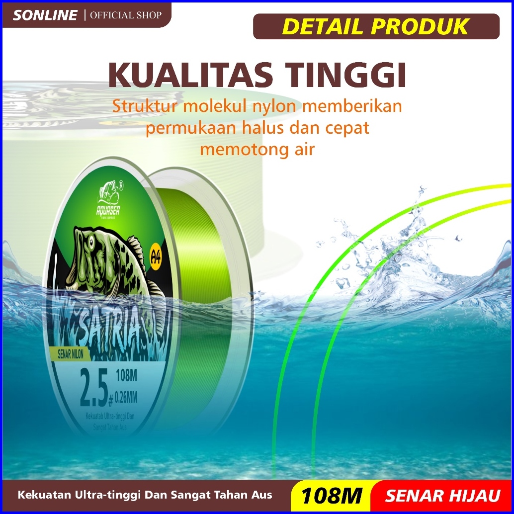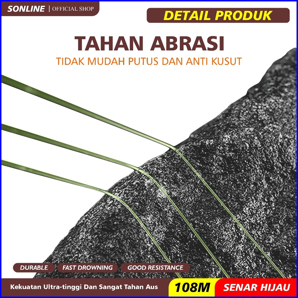 Sonline - Tali Pancing 108meter Warna Hijau Senar Pancing Bahan Nilon Super Tahan Aus Senar Satria