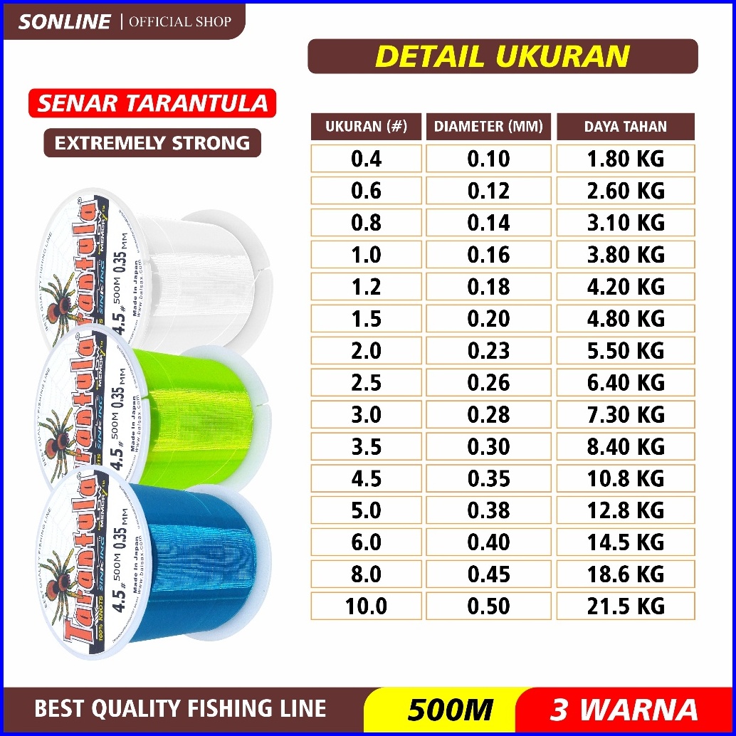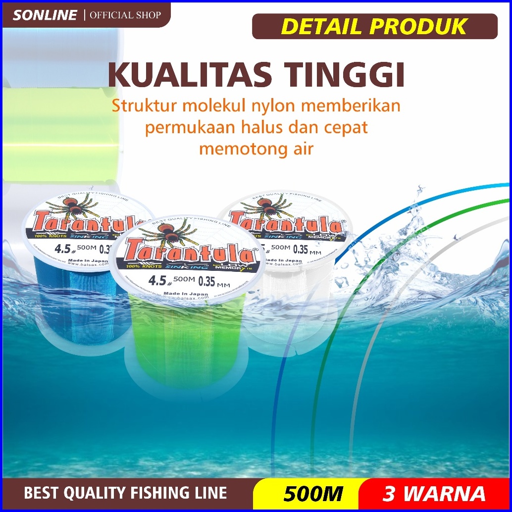 Sonline Tali Pancing Tarantula 500meter 3warna Nilon Tali Pancing Bahan Nilon Pancing Anti Keriting Super Kuat