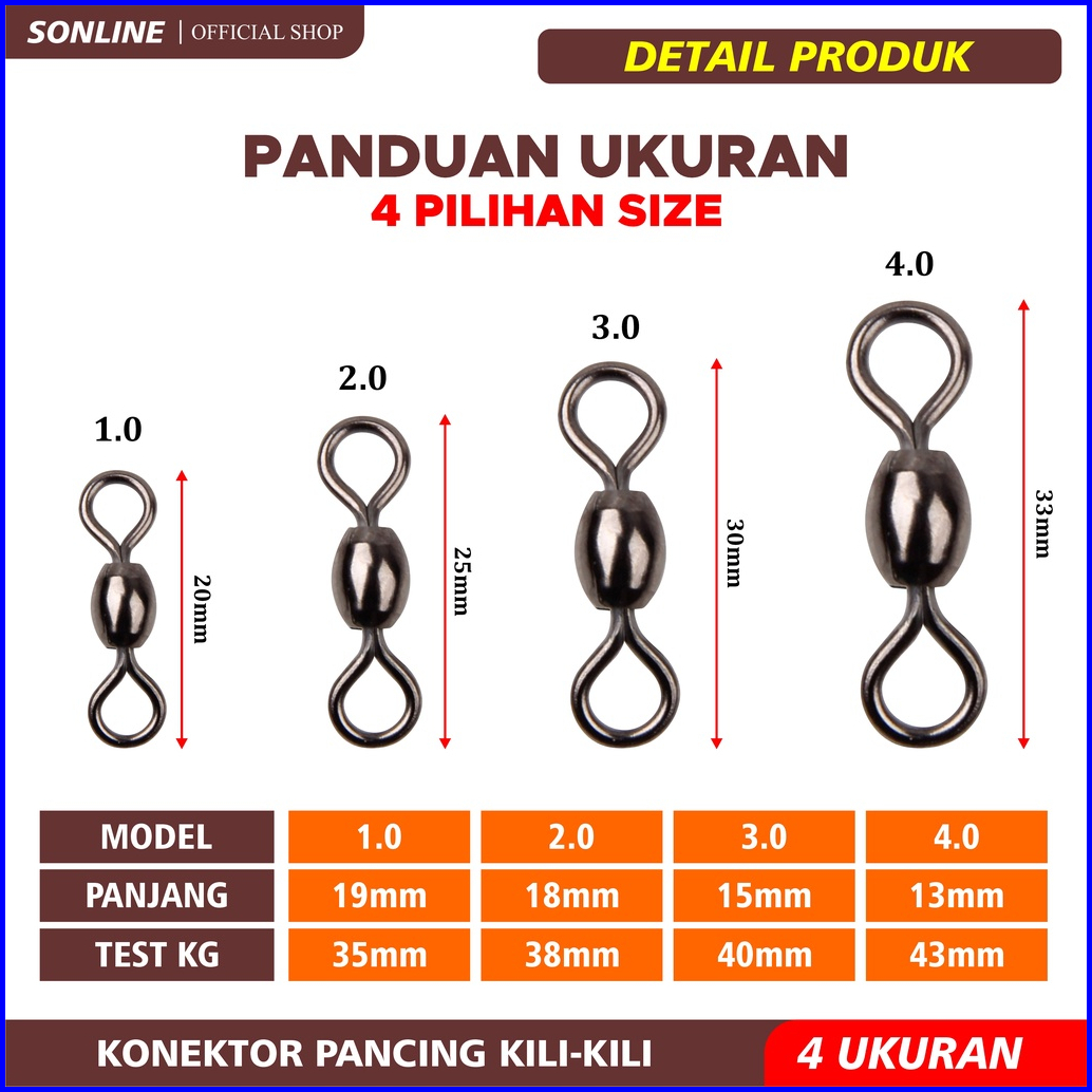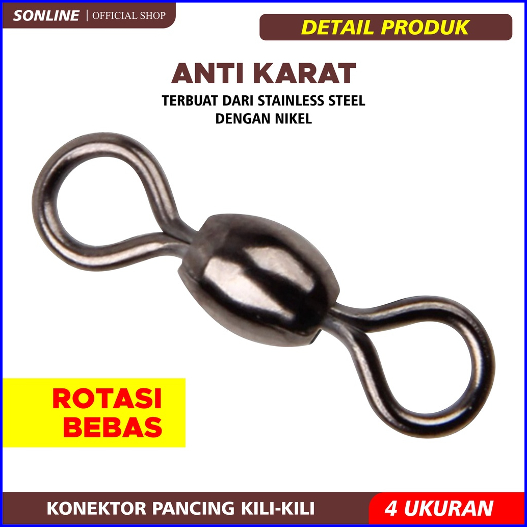 Sonline Rszh Connector Kili-kili Pancing Rolling Swivel Bahan Stainless Steel Fishing Gear