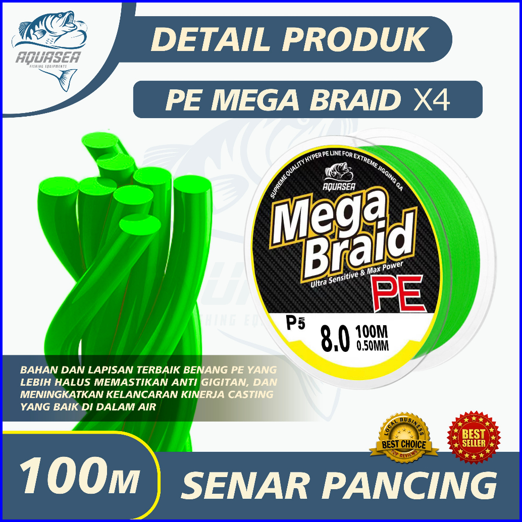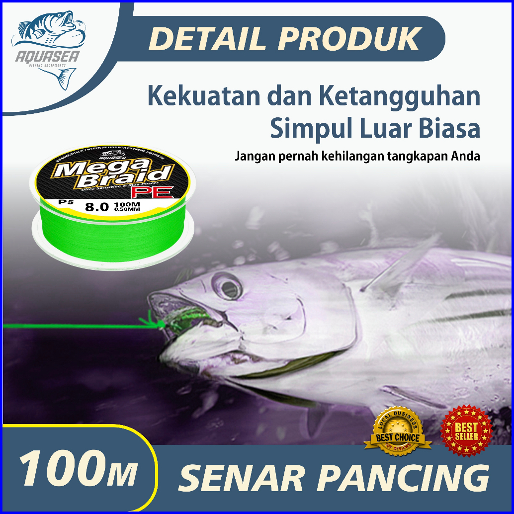 Aquasea - Senar Pancing Pe Mega Braid Senar Pancing X4 100m Warna Hijau Pe Pancing Fishing Gear