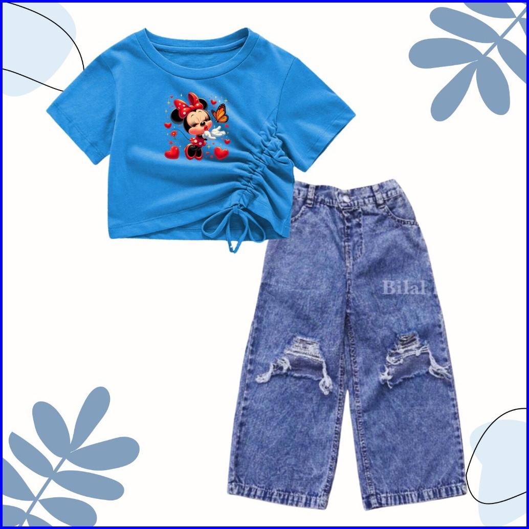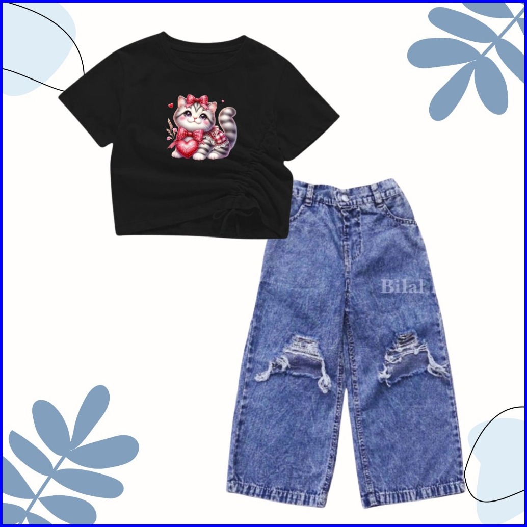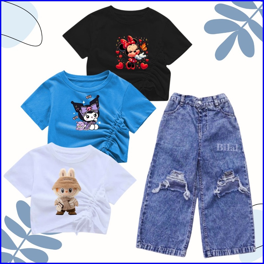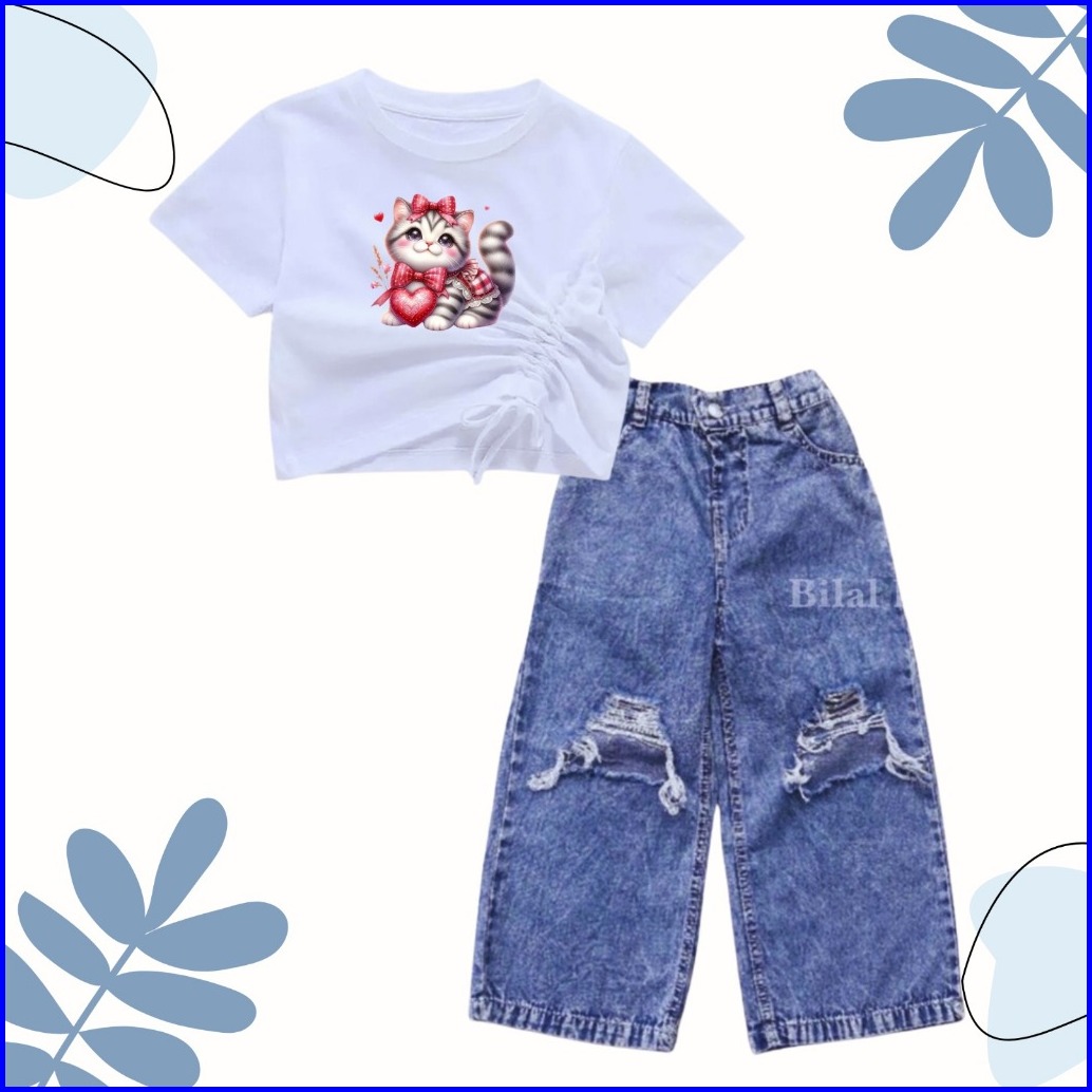 Setelan Croptop Dan Kulot Jeans Sobek Anak Usia 1-10 Tahun