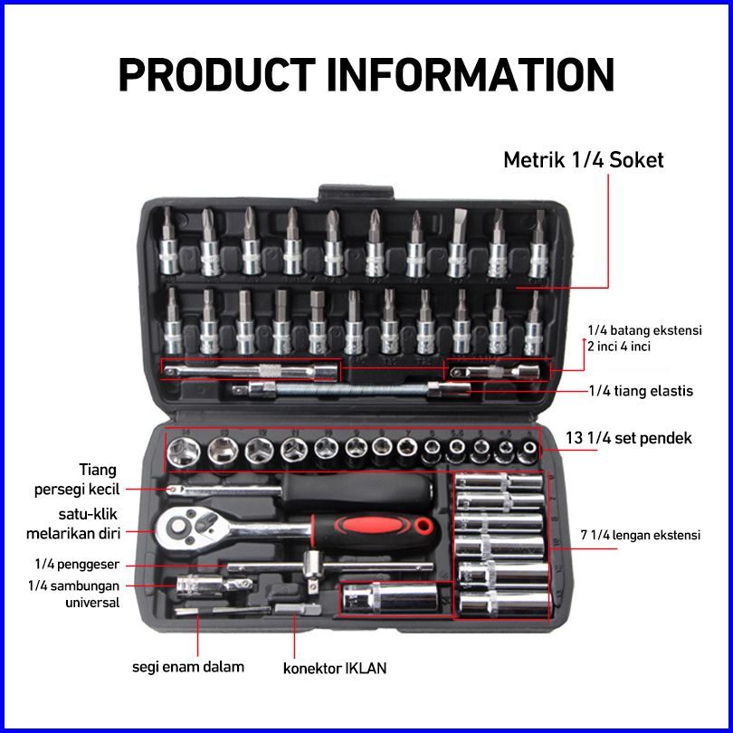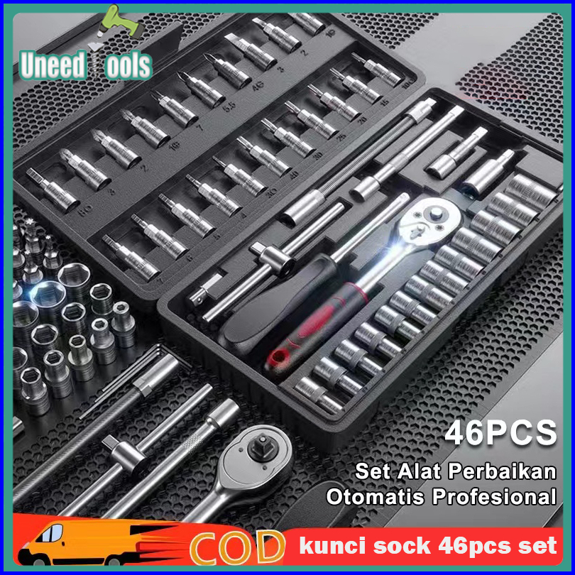Uneedtools Kunci Shock Set 46pcs Black Full Mobil Motor Lengkap Socket Tool Kunci Shock Set Original Peralatan Kunci Mot