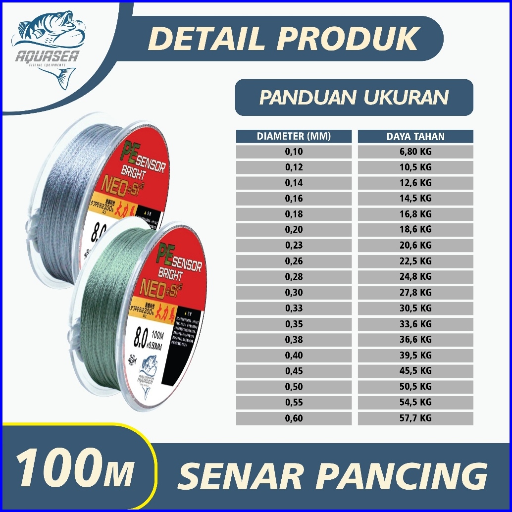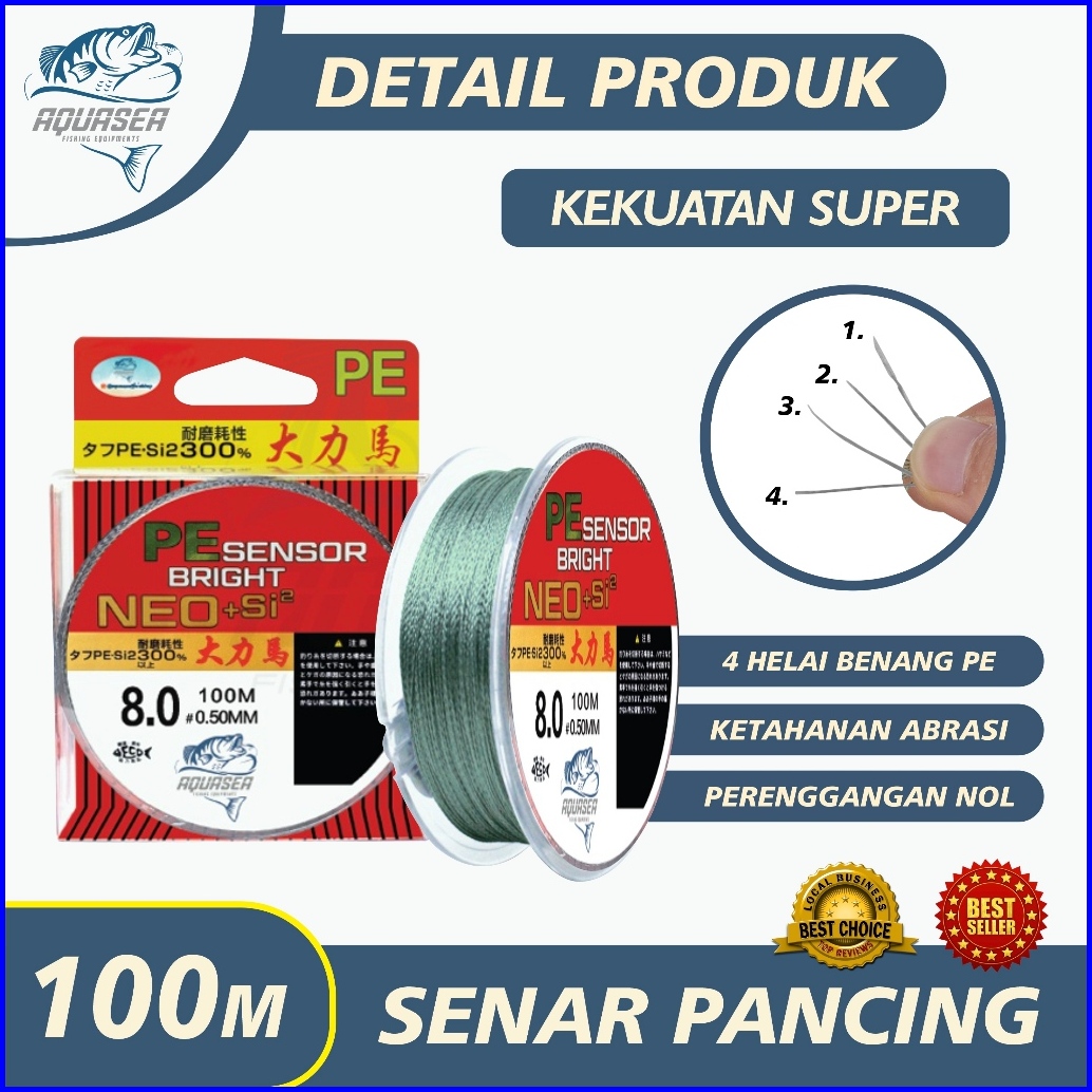 Aquasea - Tali Pancing 100m Hijau Abu Pancing Pe Sensor Bright Neo Si2 Jepang Senar Pancing Kuat