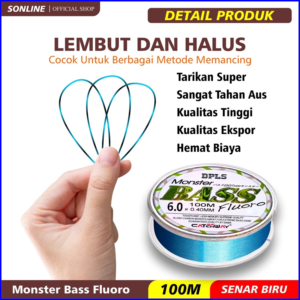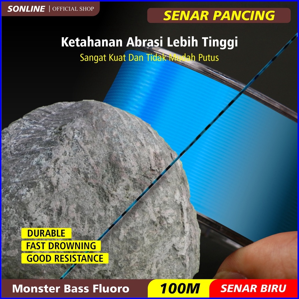 Sonline Tali Pancing Bass Fluorocarbon 100m Warna Biru Muda Senar Pancing Fishing Line Strength 4.20kg-16.5kg Sangat Kua