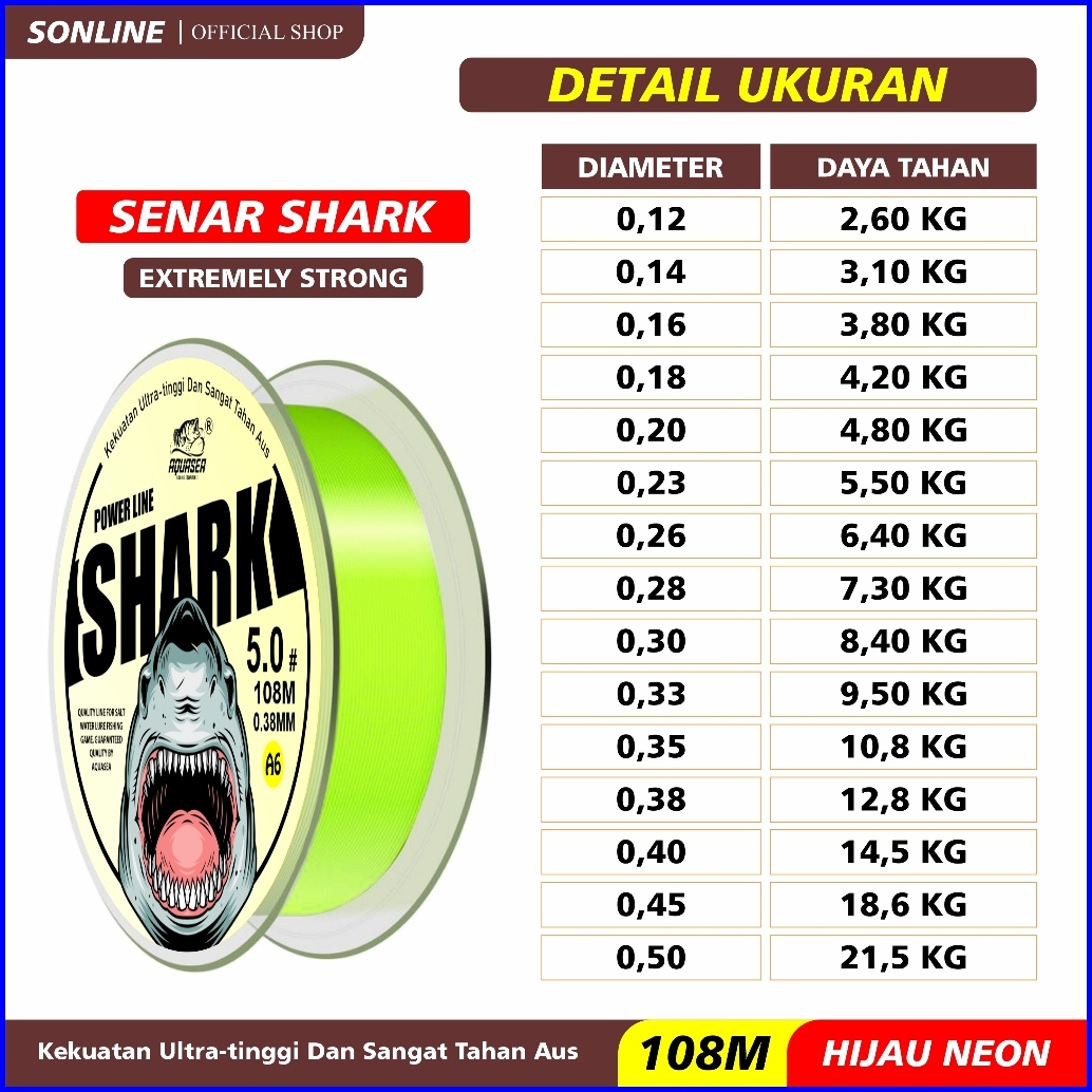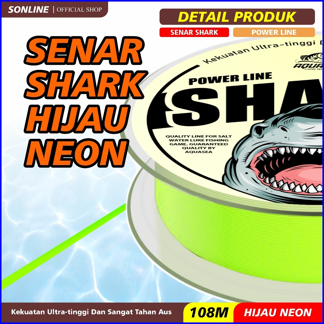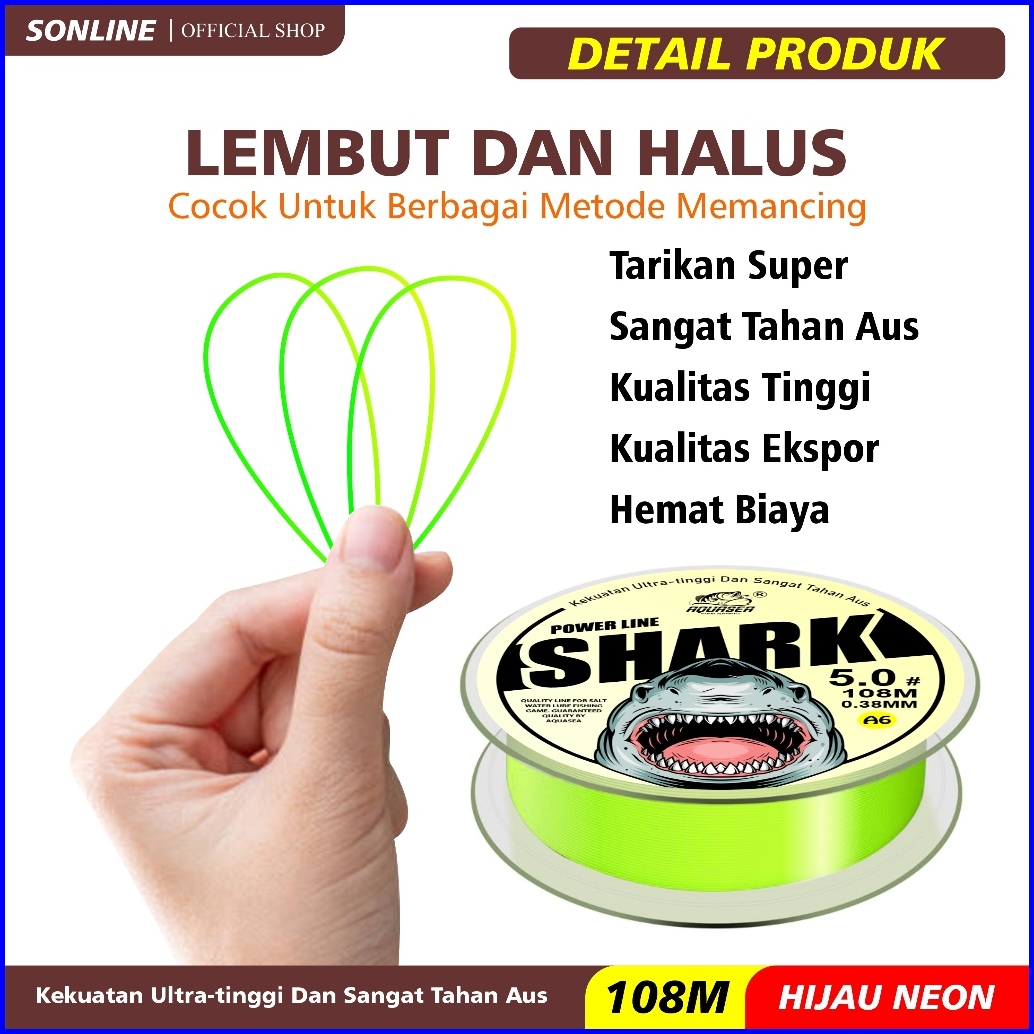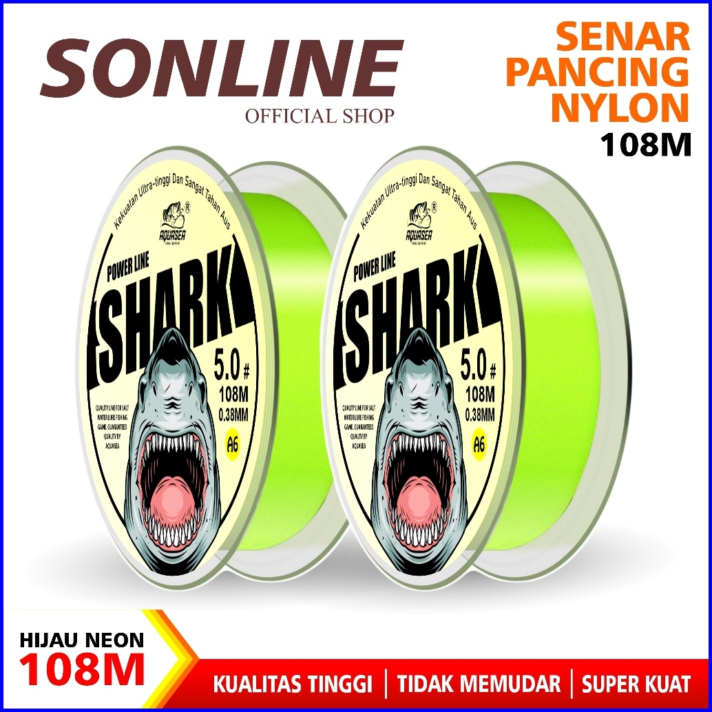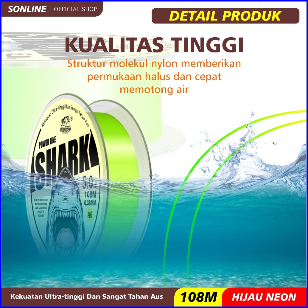 Sonline - Tali Pancing 108meter Warna Hijau Stabilo Senar Pancing Bahan Nilon Super Tahan Aus Senar Shark