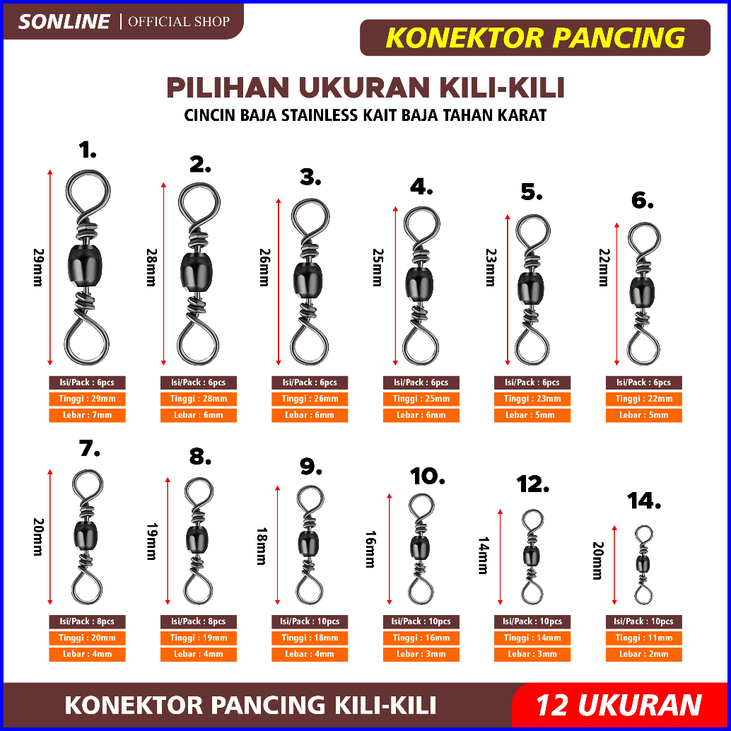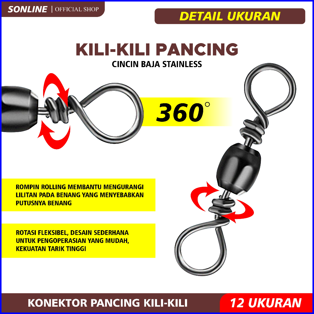 Sonline Konektor Kilikili Barrel Swivel 305 Meterial Pure Brass Kilikili Pancing Connector