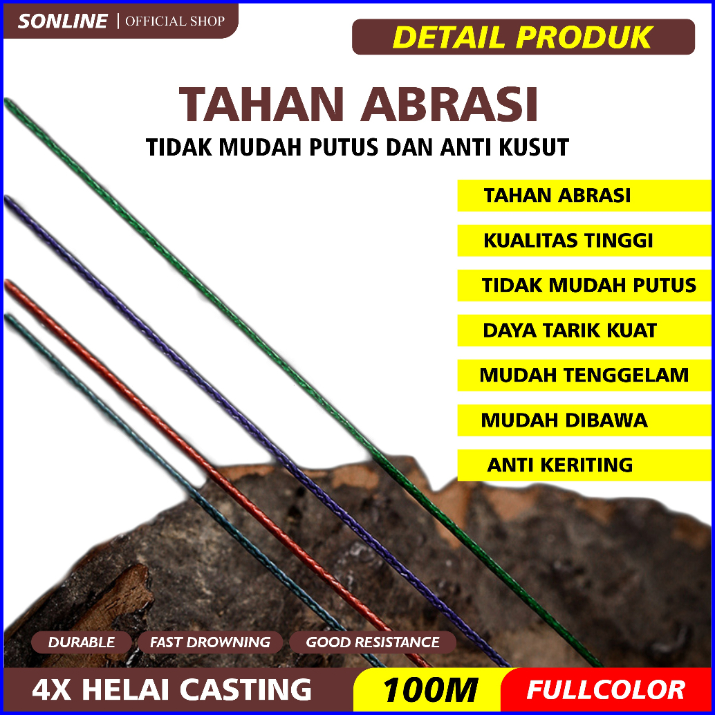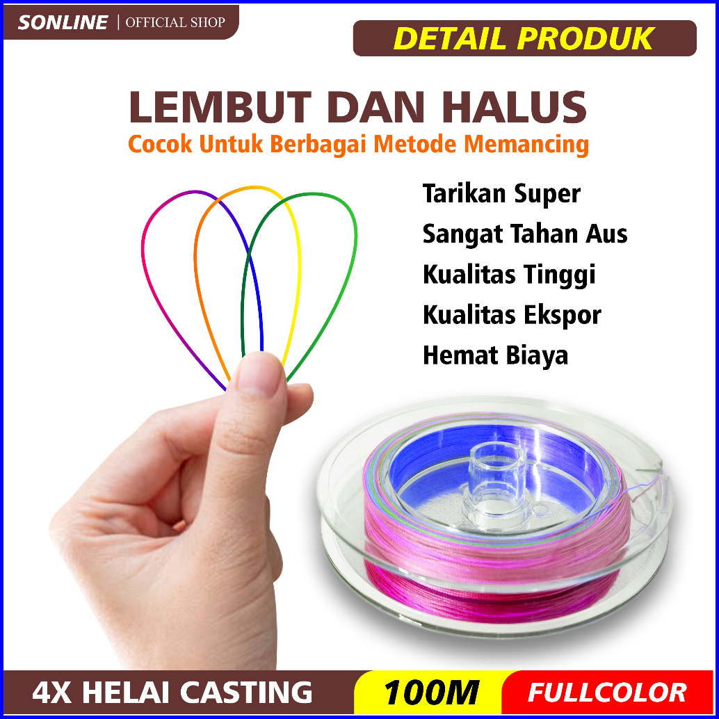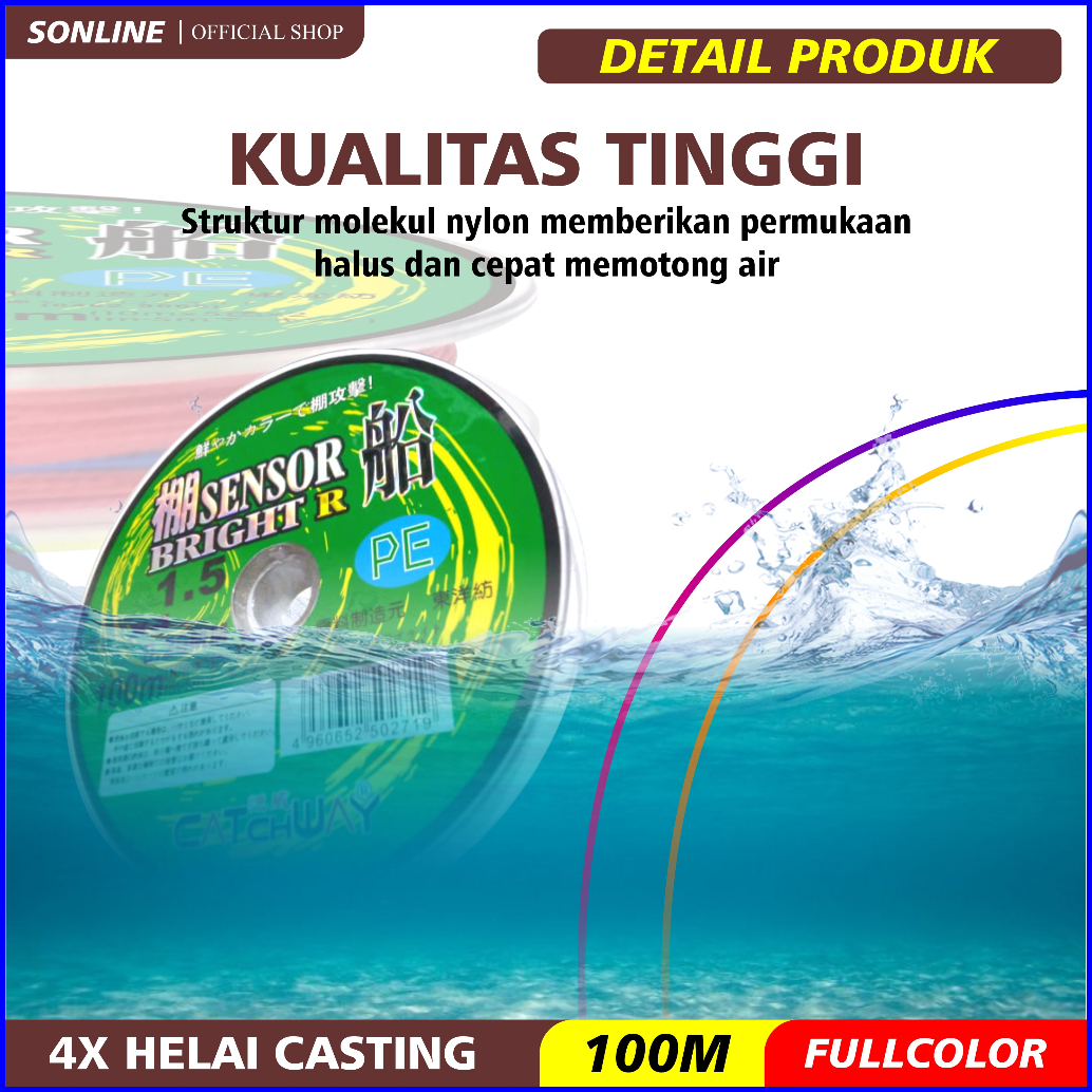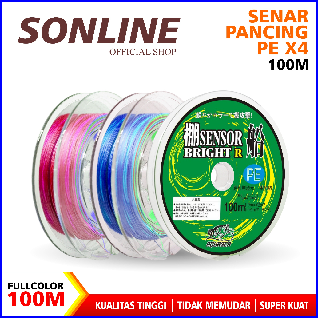 Sonline - Tali Pancing 100m Senar Pancing Pe Sensor Bright Warna Colorfull Senar Pancing 100m Super Kuat Tahan Bahan Pe
