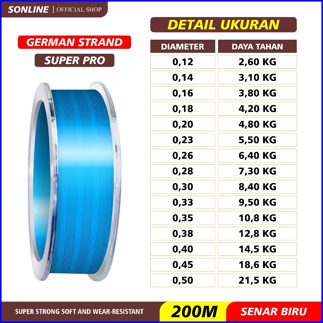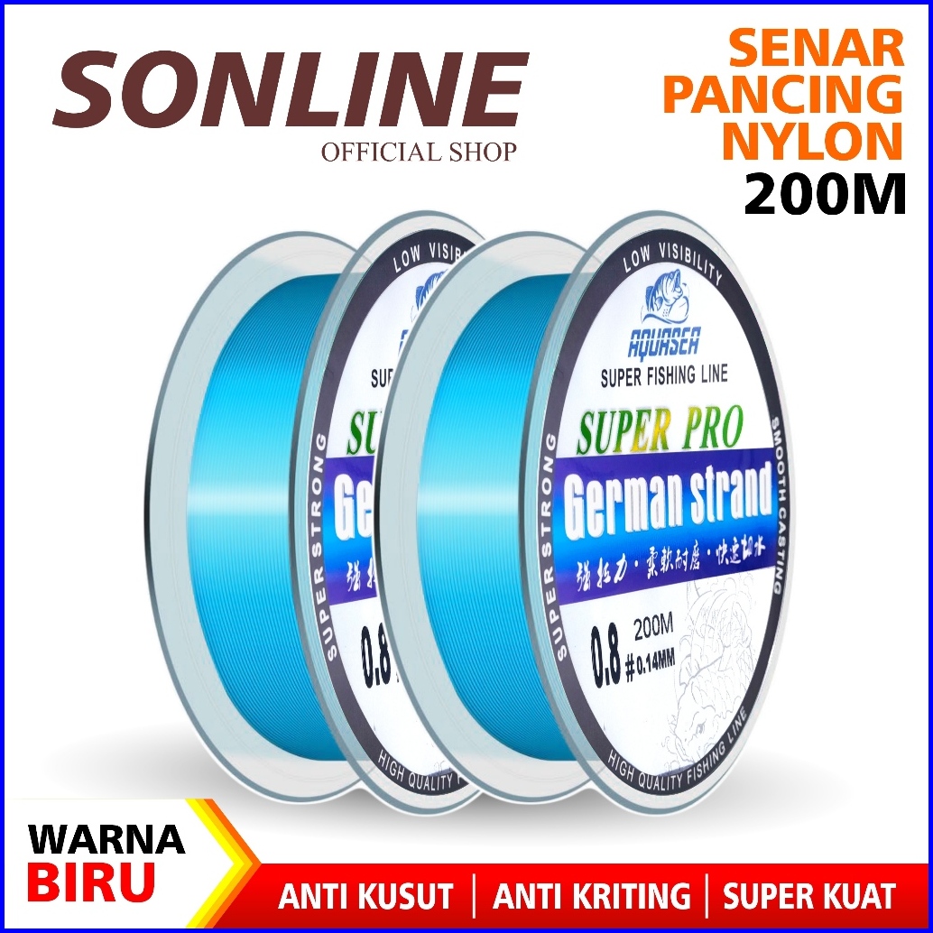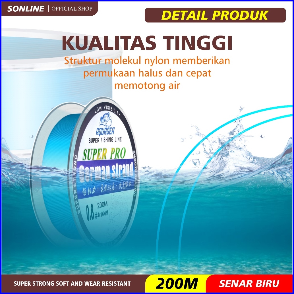 Sonline - Tali Pancing 200m Germany Warna Biru Fishing Line Senar Pancing Bahan Nilon Tahan Murah