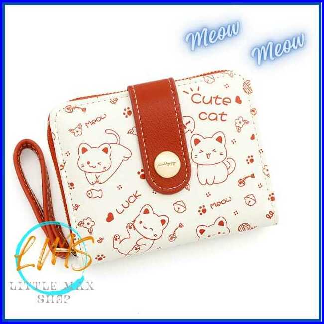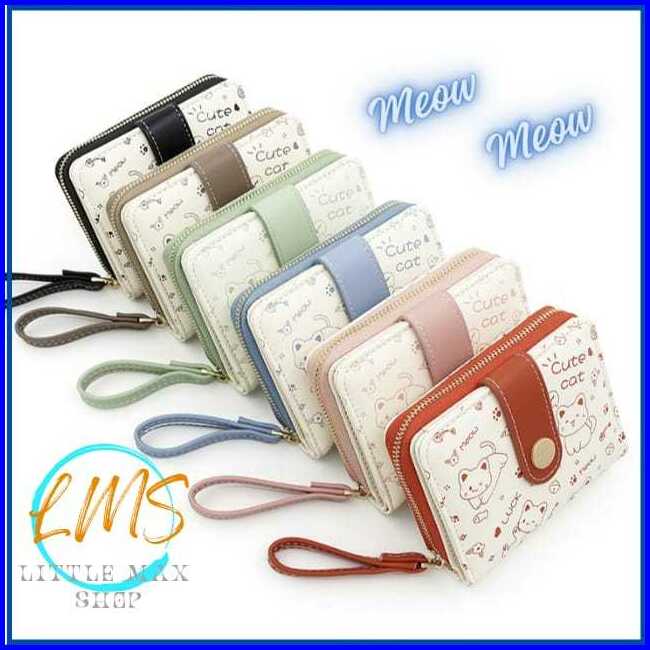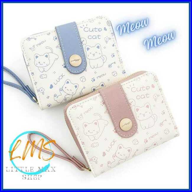 Lms Dompet Lucu Wanita Cute Cat Dompet Lipat Mini Korean Kulit Pu Fashion Resleting