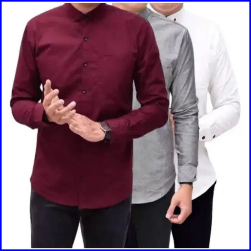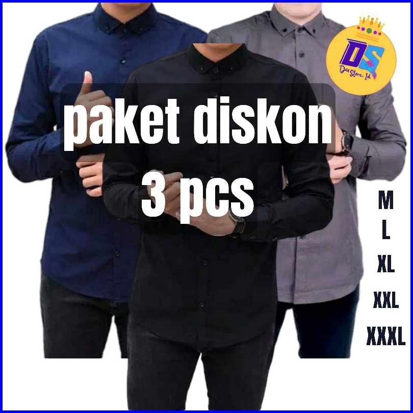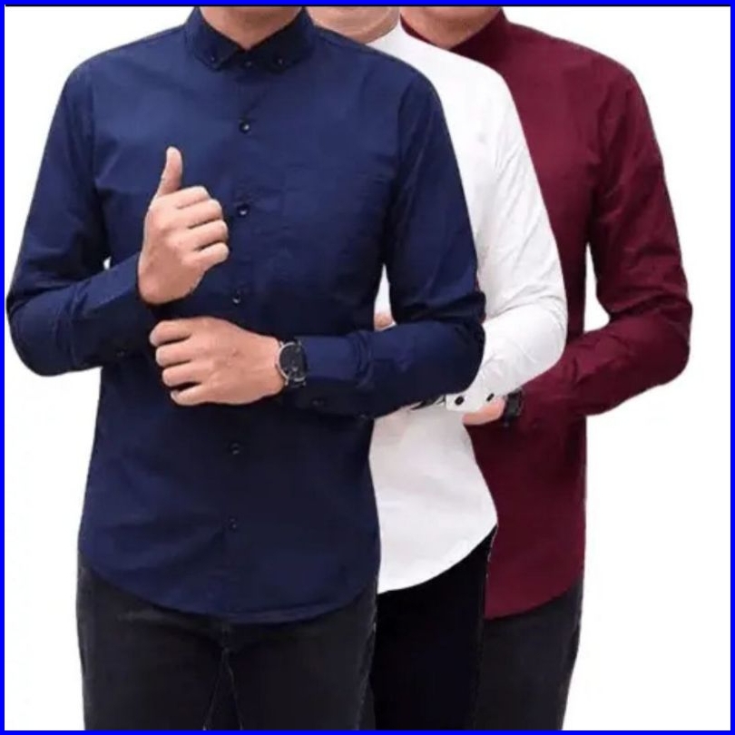 Paket 3 Pcs Kemeja Pria Polos Lengan Panjang Slimfit Casual Formal Baju Dinas Pakaian