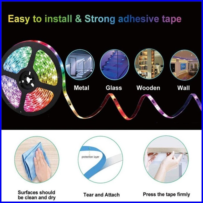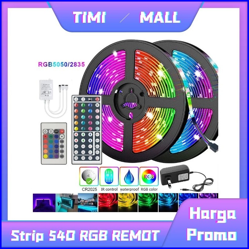 Timimall Lampu Led Strip Rgb Warna Warni 2835 5050 Komplit Set Adaptor Remote Waterproof