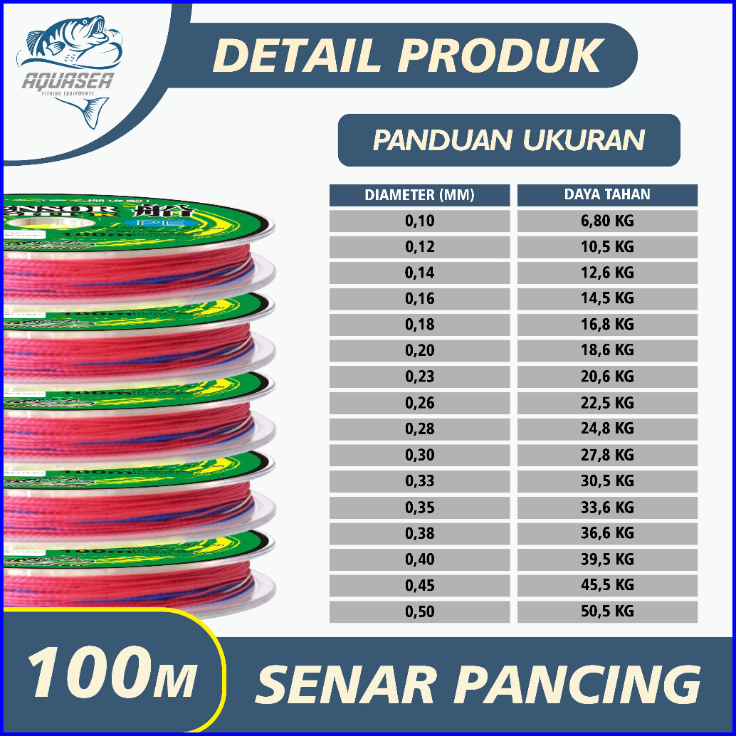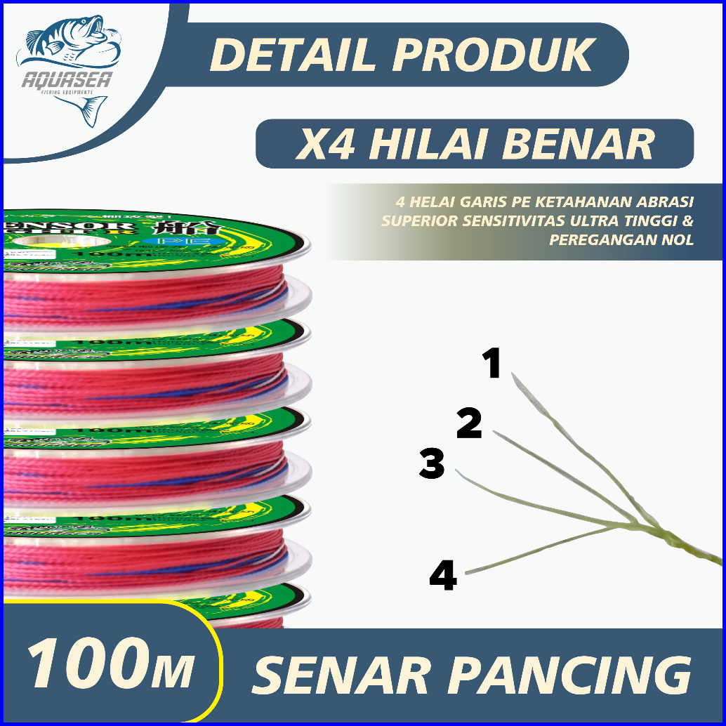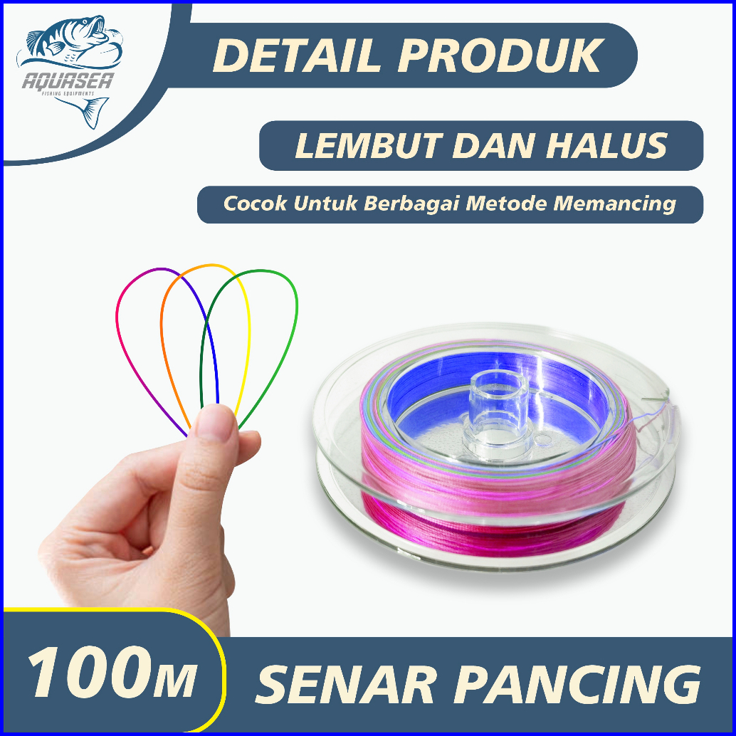 Aquasea - Tali Pancing 100m Senar Pancing Pe Sensor Bright Warna Colorfull Pancing Kuat Tahan