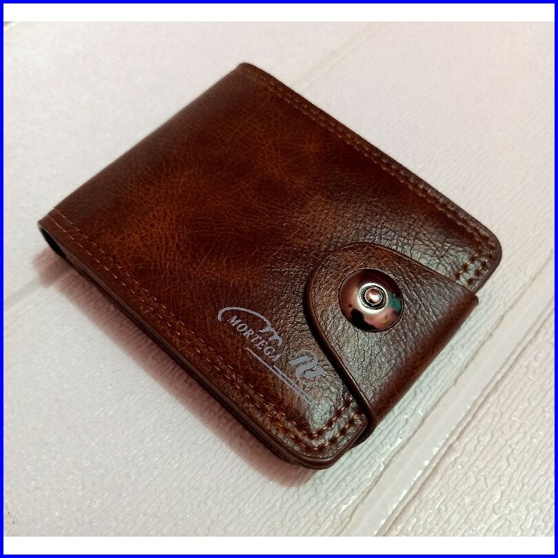 Dompet Pria Lipat Dua Model Kancing Magnet Dompet Kulit Impor