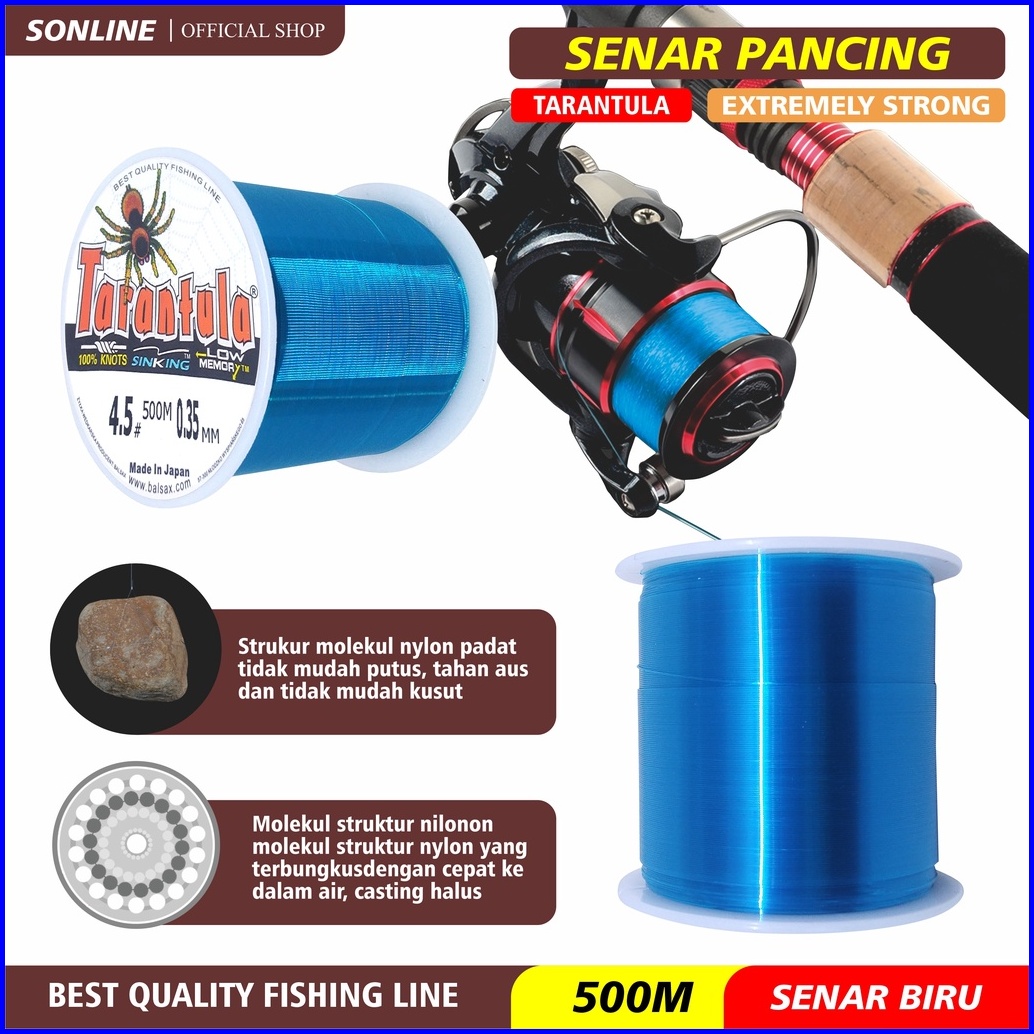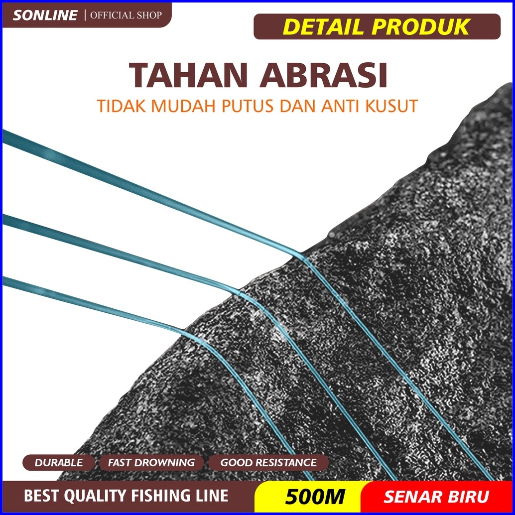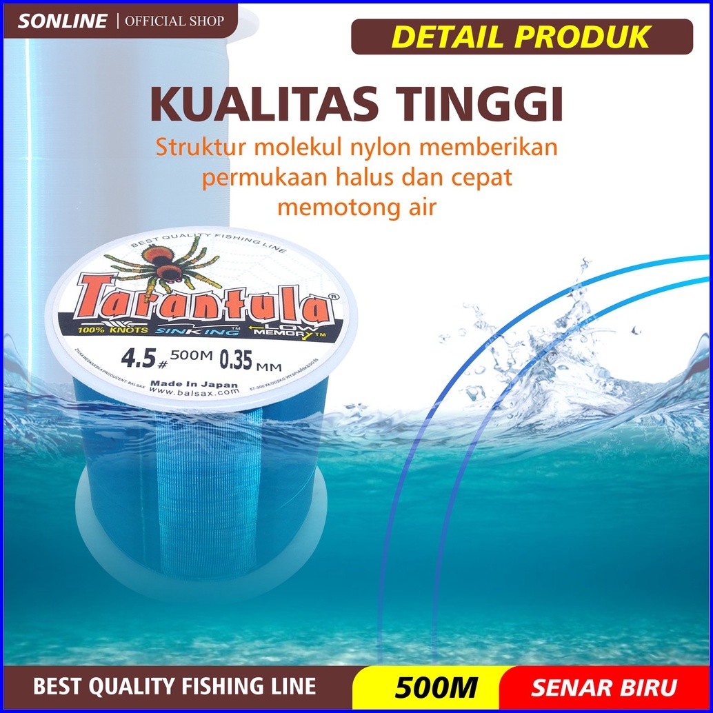 Sonline Tali Pancing 500m Senar Pancing Tarantula Warna Biru Fishing Line Senar Kuat Tahan Bahan Nilon Impor