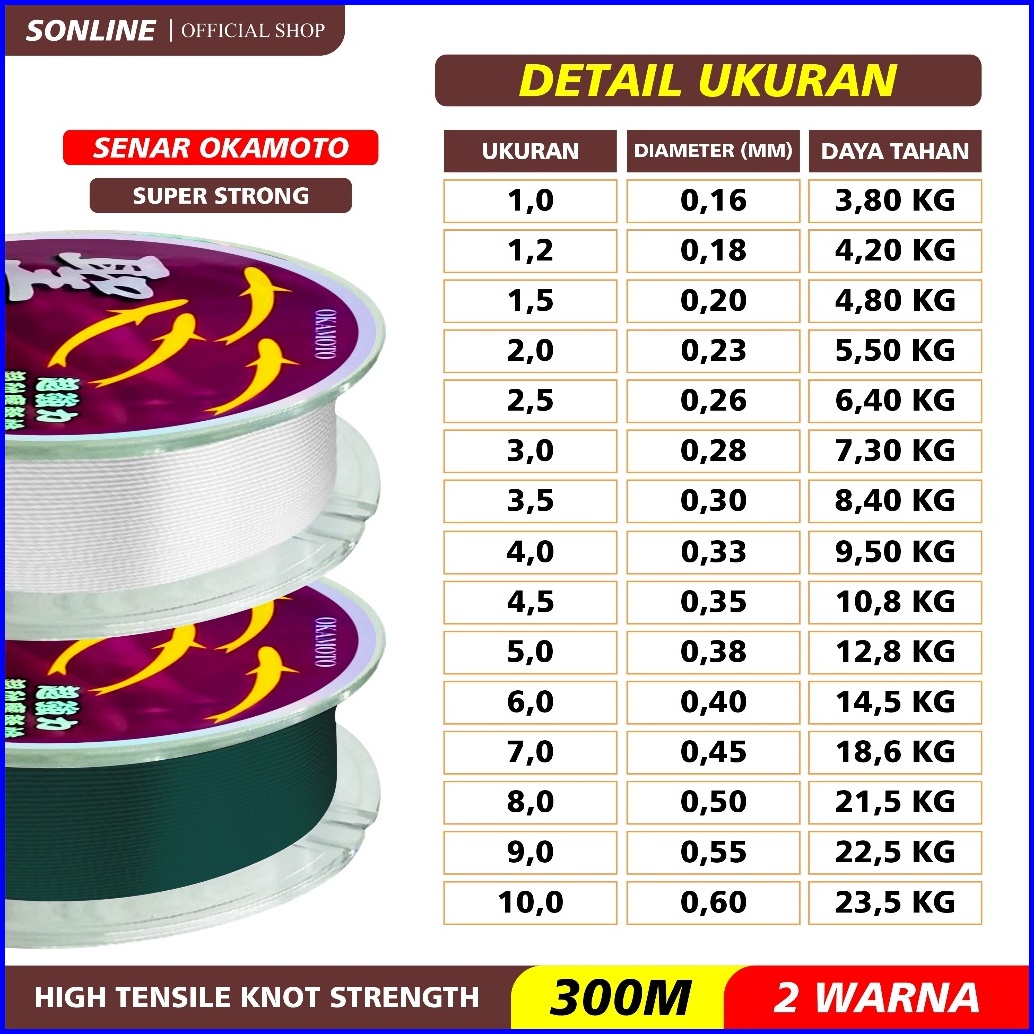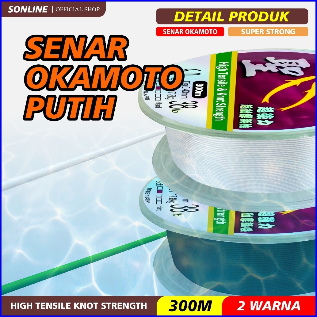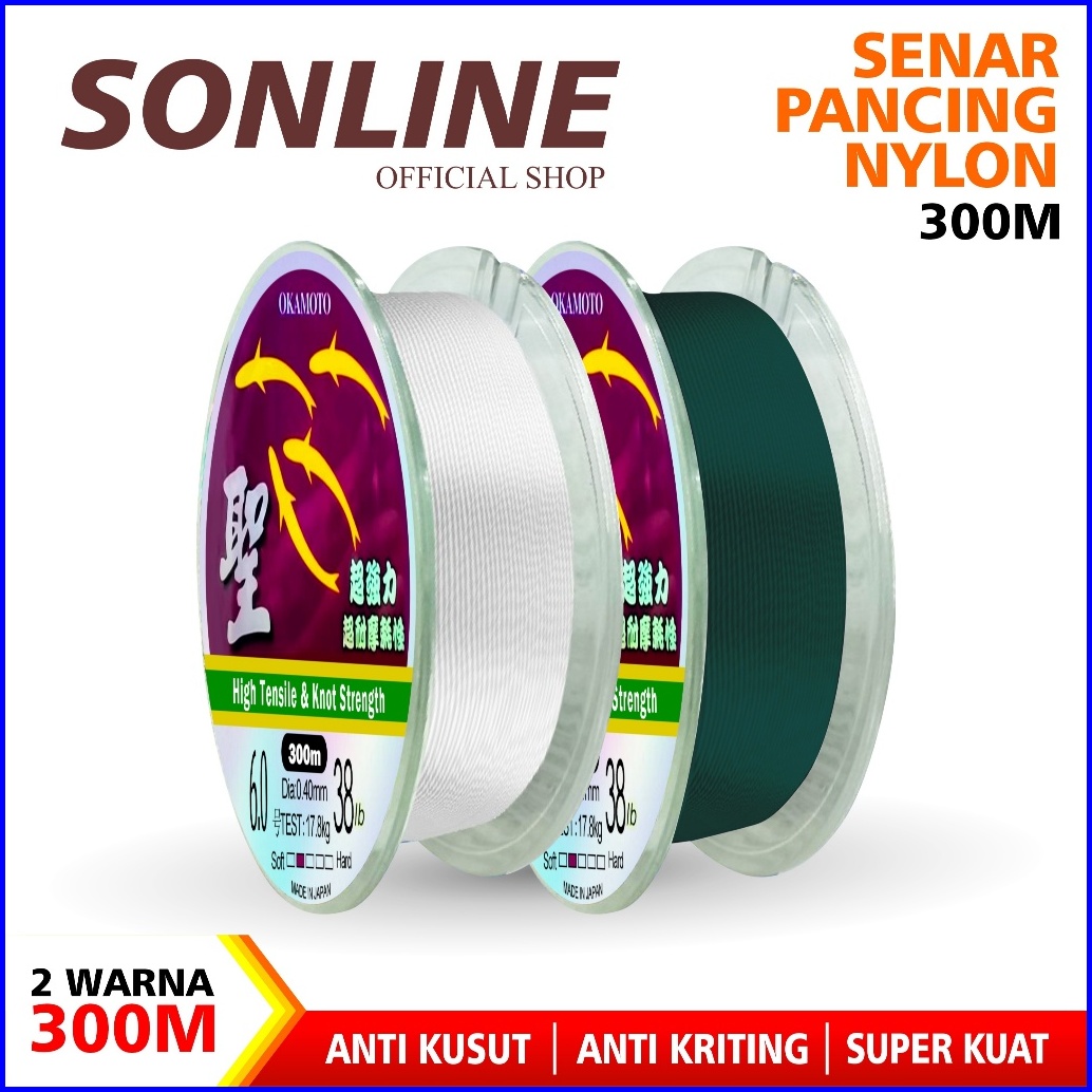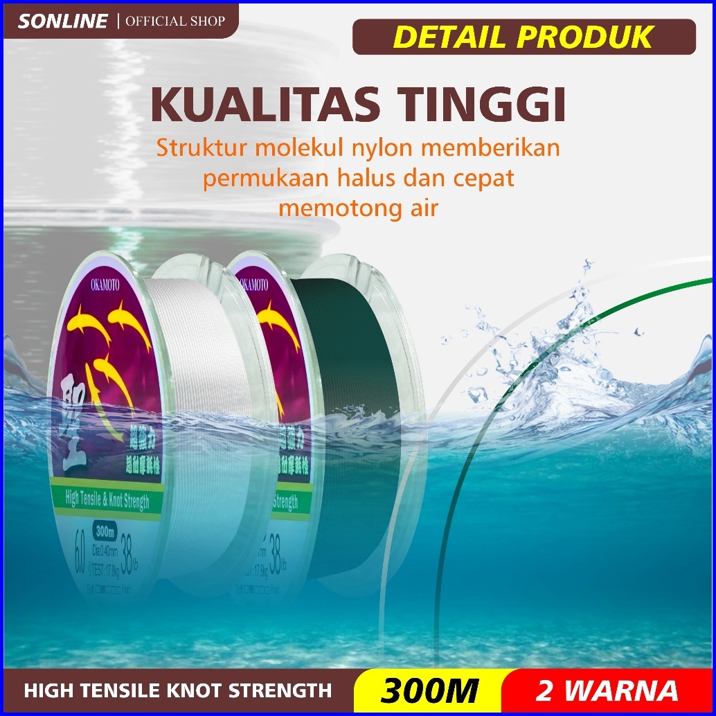 Sonline Tali Pancing Nilon Okamoto 300m Warna Hijau Putih Senar Pancing Jepang 300m Kekuatan Tarik Tensil
