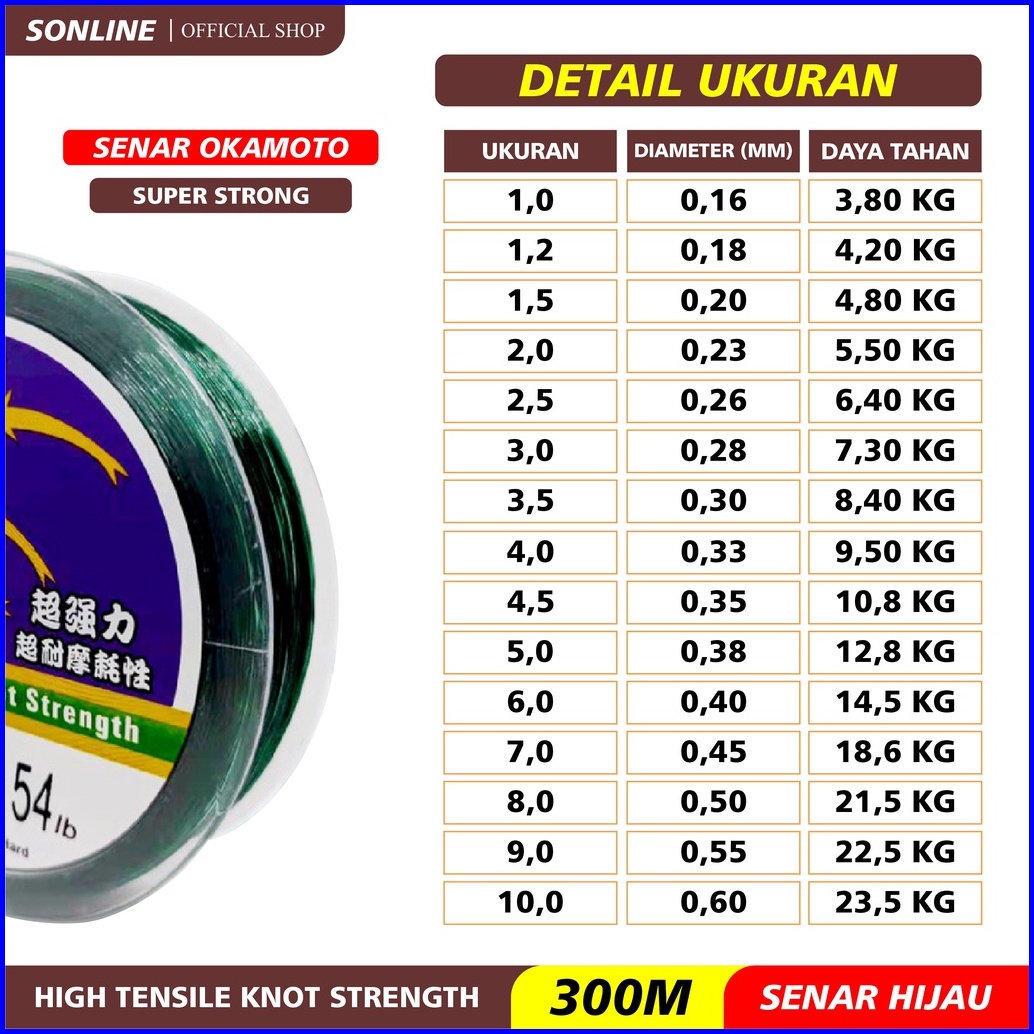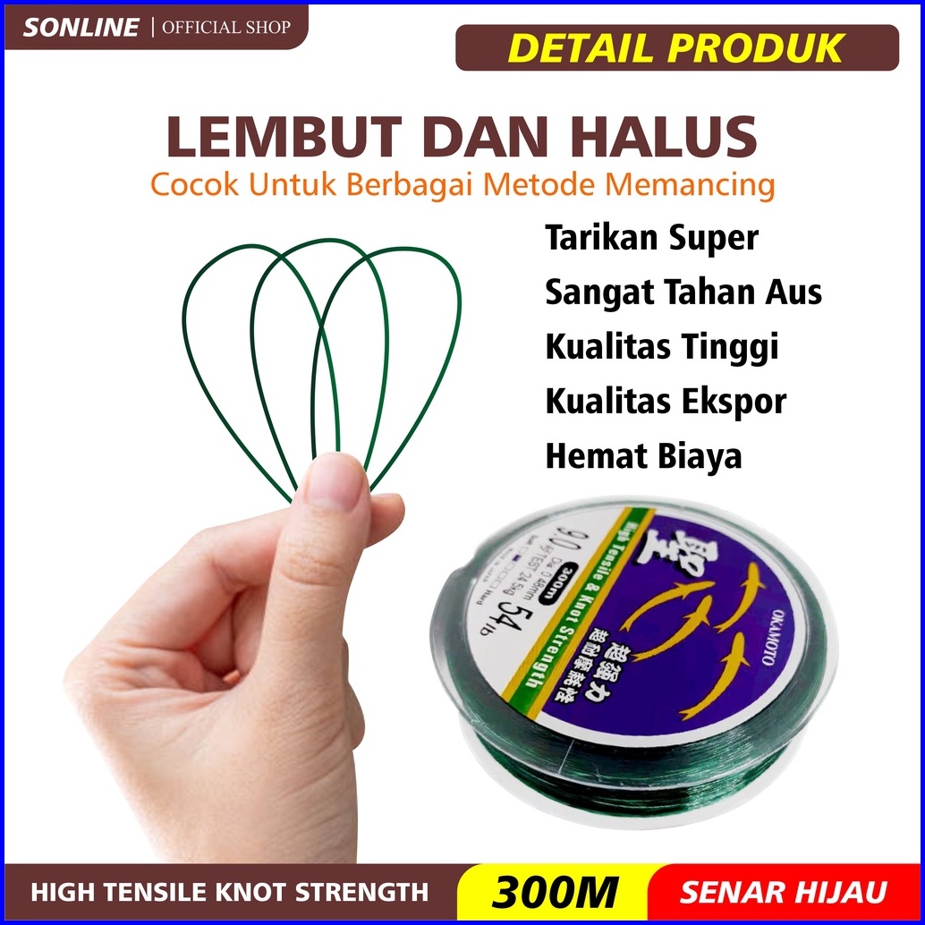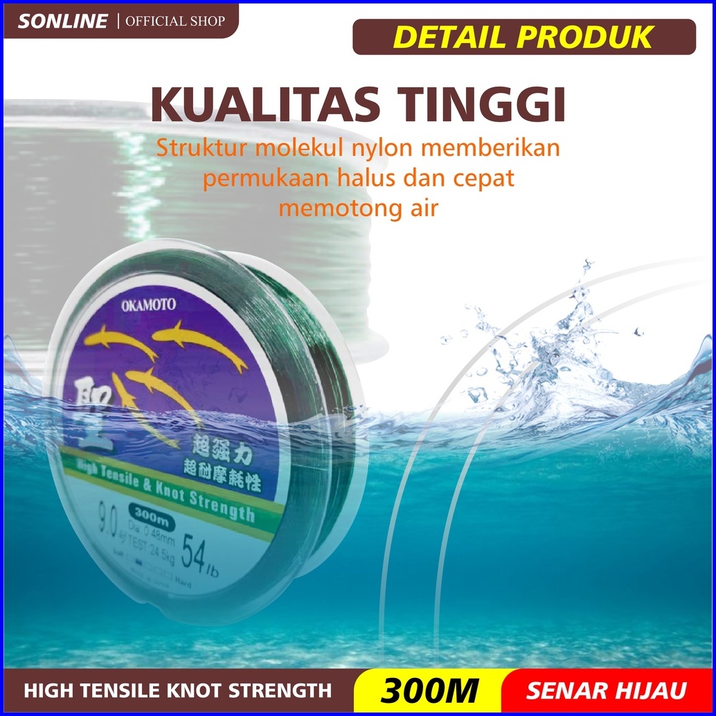 Sonline Tali Pancing Okamoto Senar Pancing Jepang 300m Kekuatan Tarik Tensil