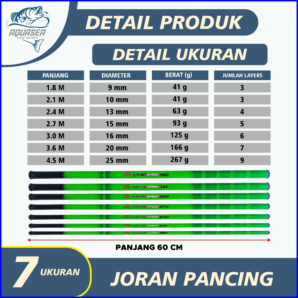 Aquasea - Joran Tegek Water Speed Pancing Antena Carbo Ukuran 1.8m - 4.5m Joran Pancing Tegek Water