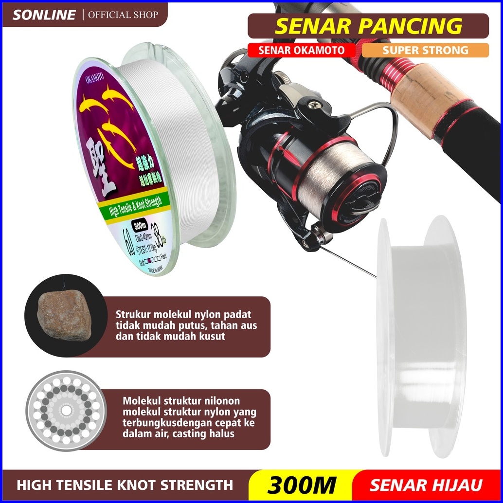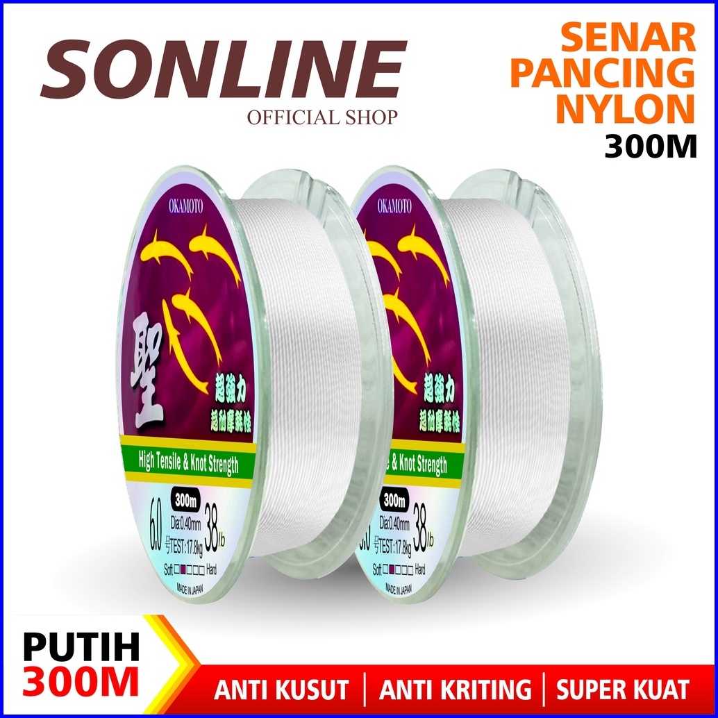 Sonline Tali Pancing Okamoto Warna Putih Senar Pancing Jepang 300m Kekuatan Tarik Tensil