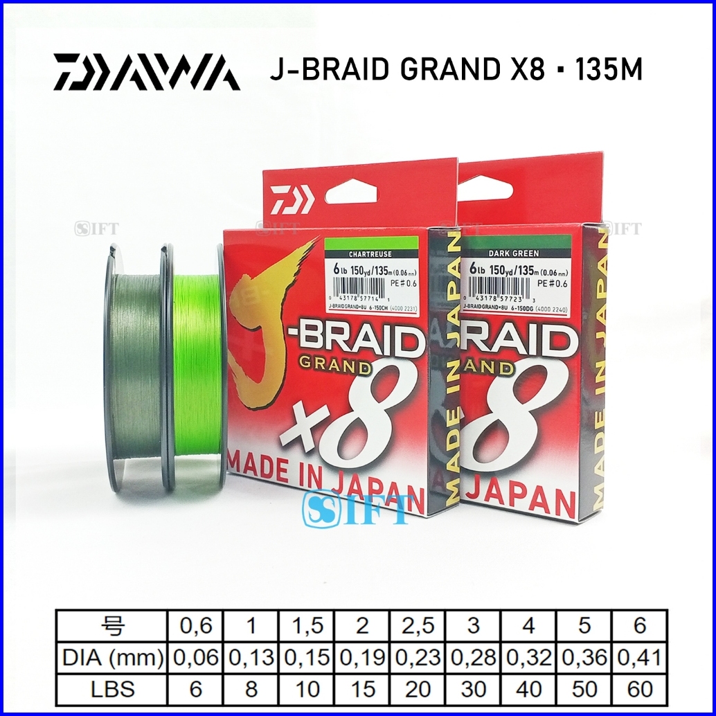Senar Pe Daiwa J-braid Grand X8 135m Made In Japan Pilih Warna Ukuran Ift Store