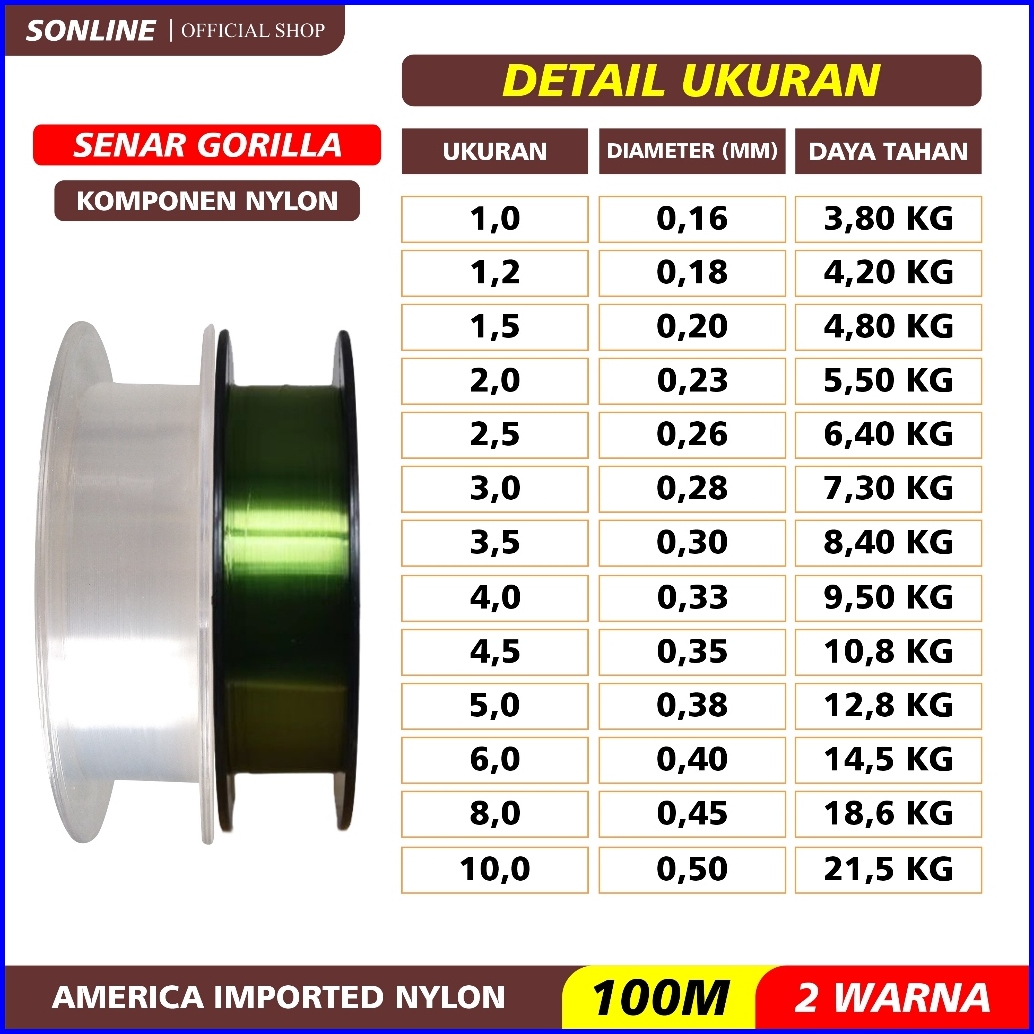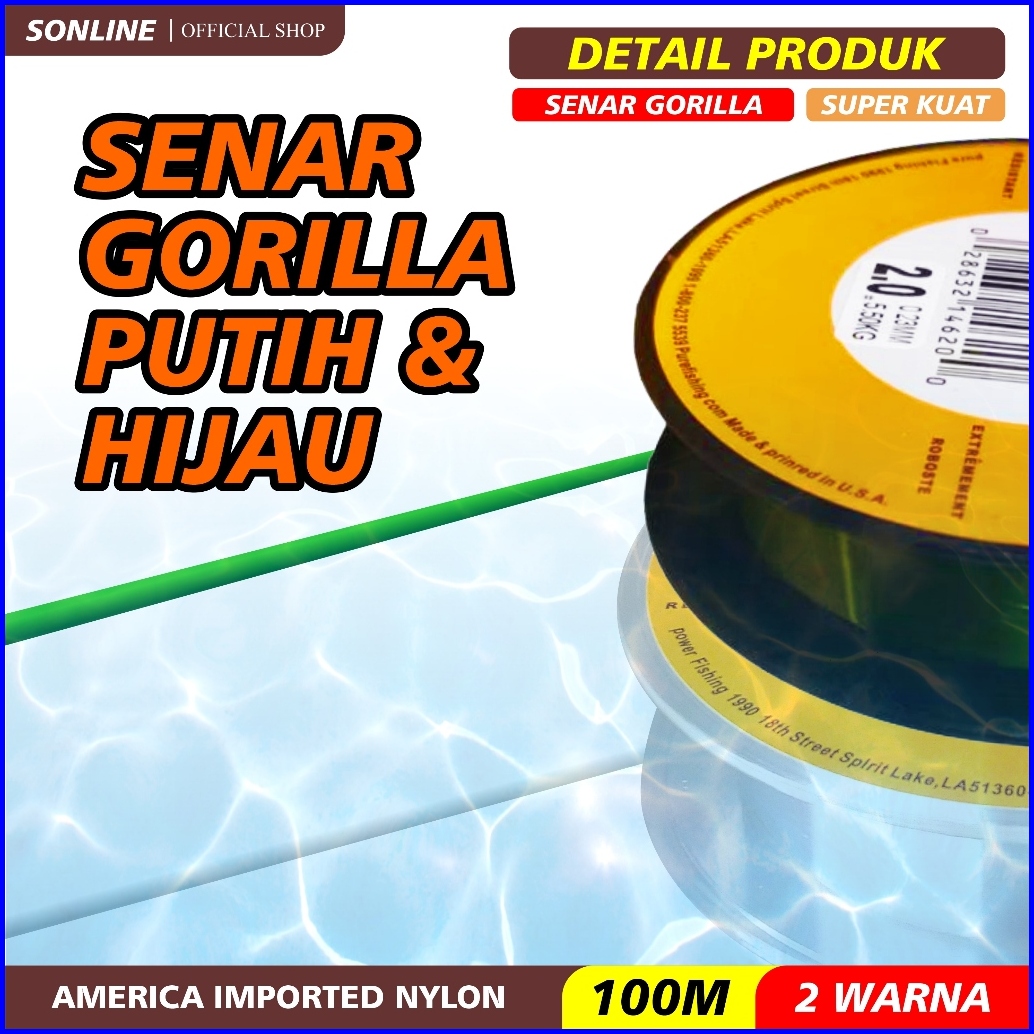 Sonline Tali Pancing Berkley Gorilla Tough Senar Pancing Amerika 100m Super Kuat Tahan Bahan Nilon