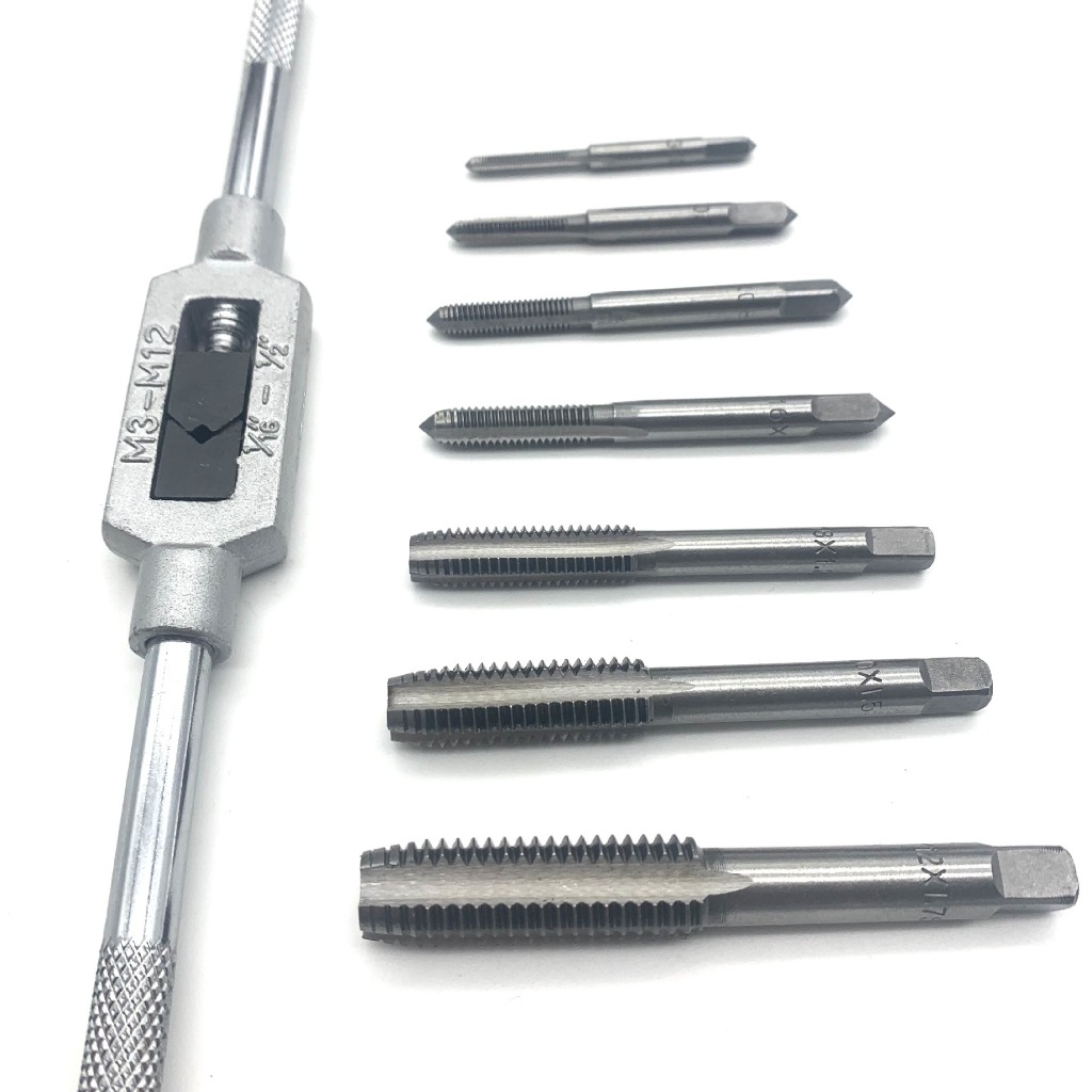 Mata Tap Set 8pcs Lengkap Hand Tap Alat Membuat Drat Dalam M3-M12 - Handtap M3 M4 M5 M6 M8 M10 M12-Mata Tap Drat Dalam Mur Baut