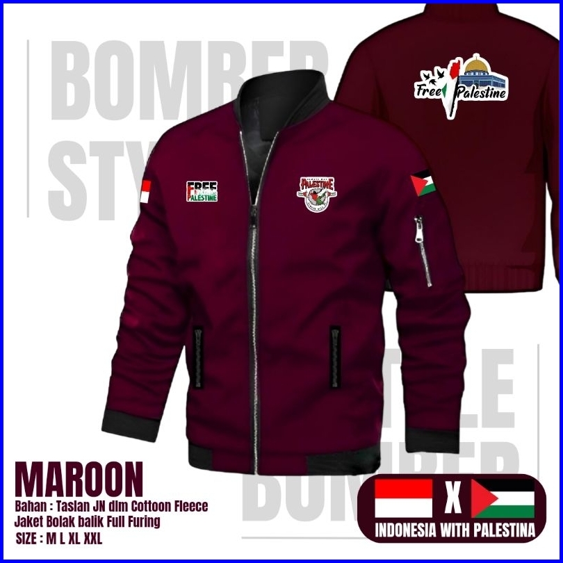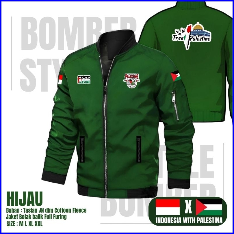 Jaket Free Palestine X Indonesia Special Edition Jaket Bomber Gaza Palestina Merdeka Custom Sablon Waterproof