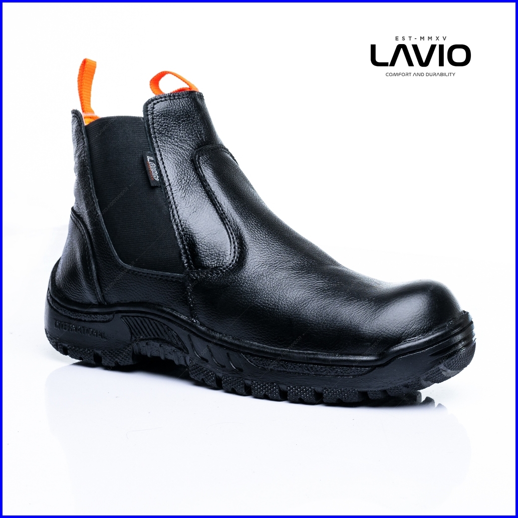 Lavio Sepatu Safety Proyek Bangunan Kitchen Jalan Kuat Garansi Original Boots Hitam Original Ujung Besi Kulit Asli