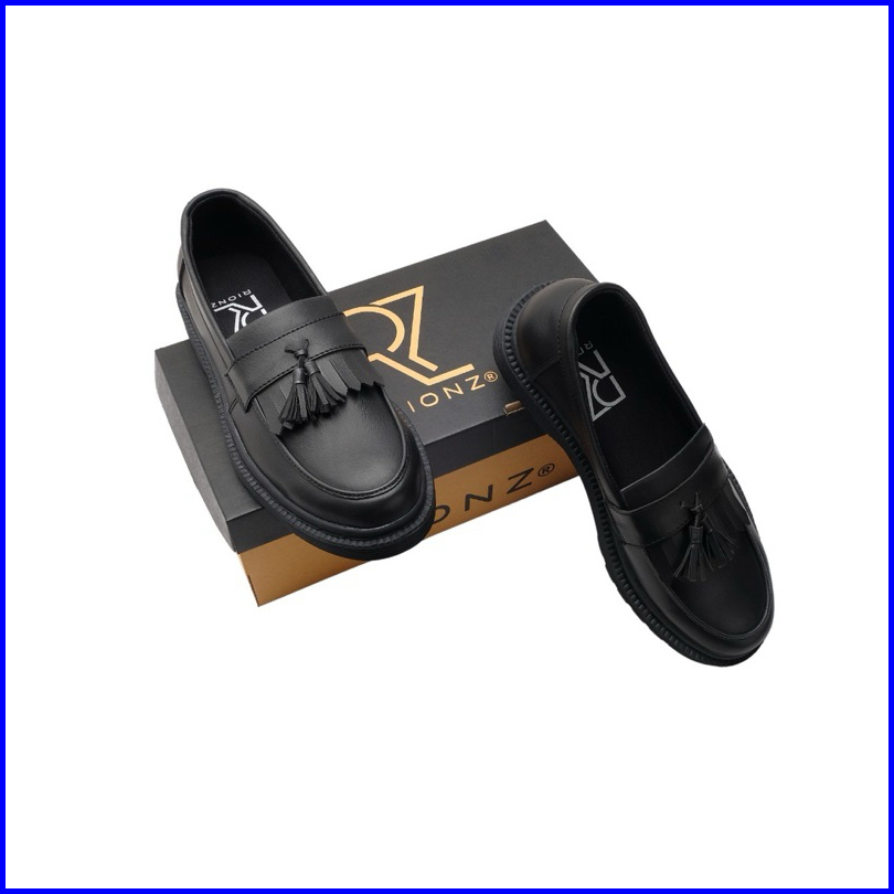 Rionz Daren Black - Sepatu Formal Pria Pantofel Hitam Kantor Kerja Kuliah