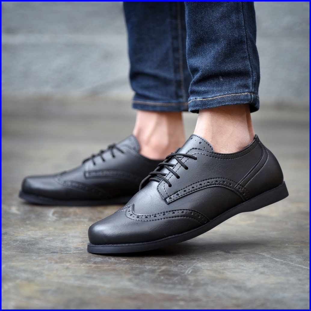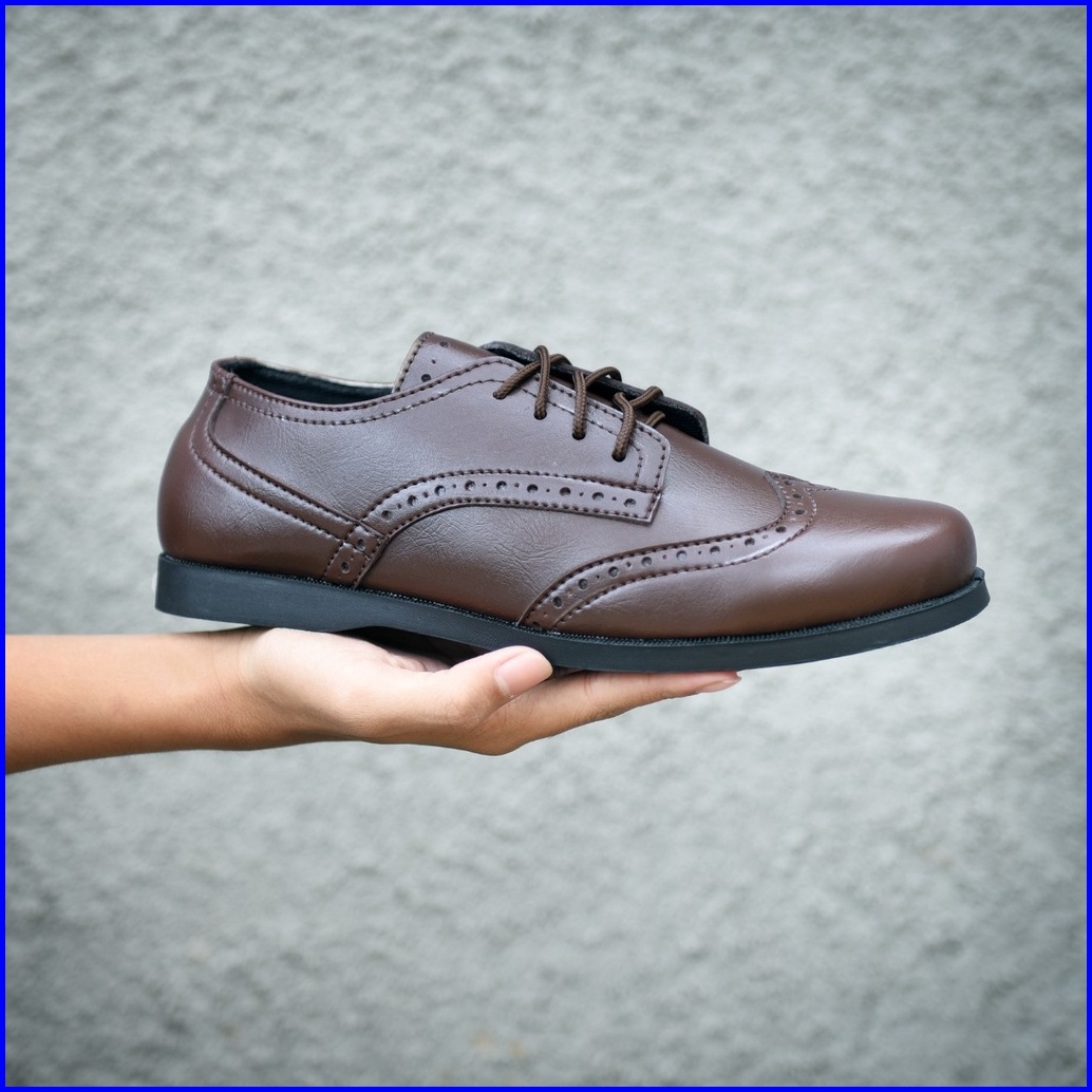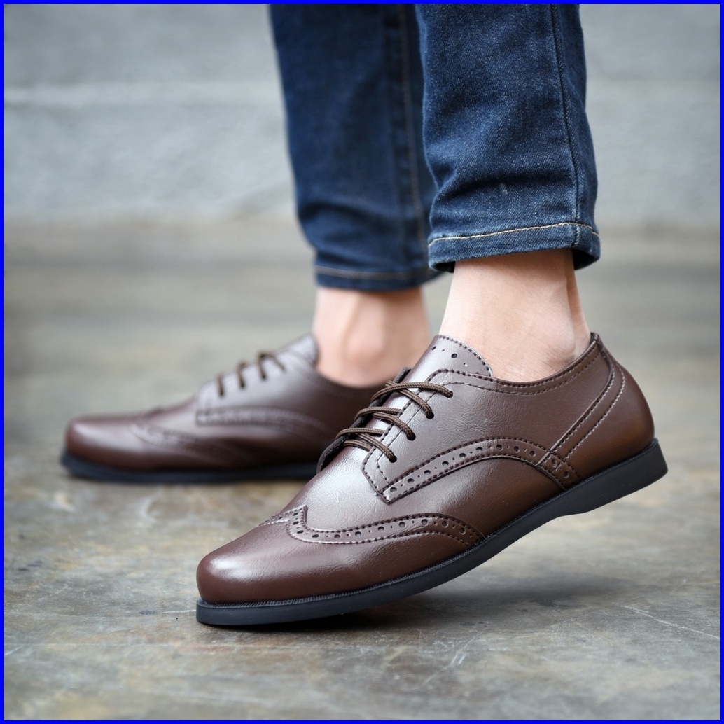 Rionz Veron - Sepatu Formal Pria Kantor Pantofel Tali Hitam Coklat