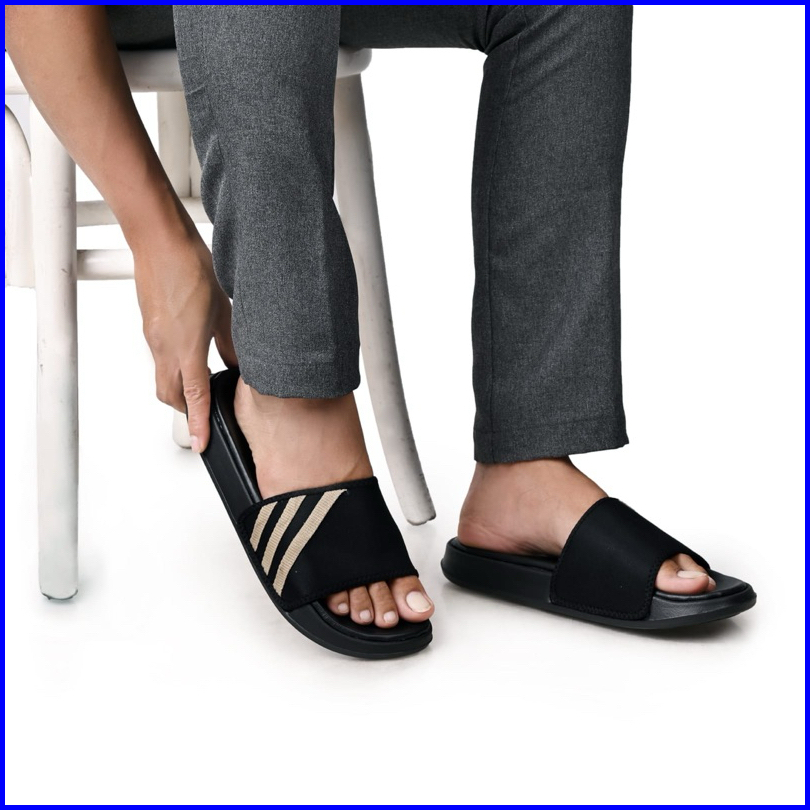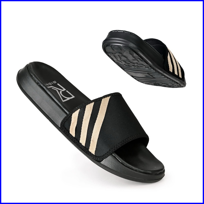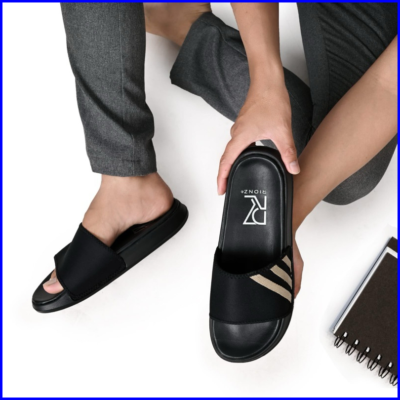 Rionz Haruka Black - Sendal Pria Slide Hitam Slop Casual