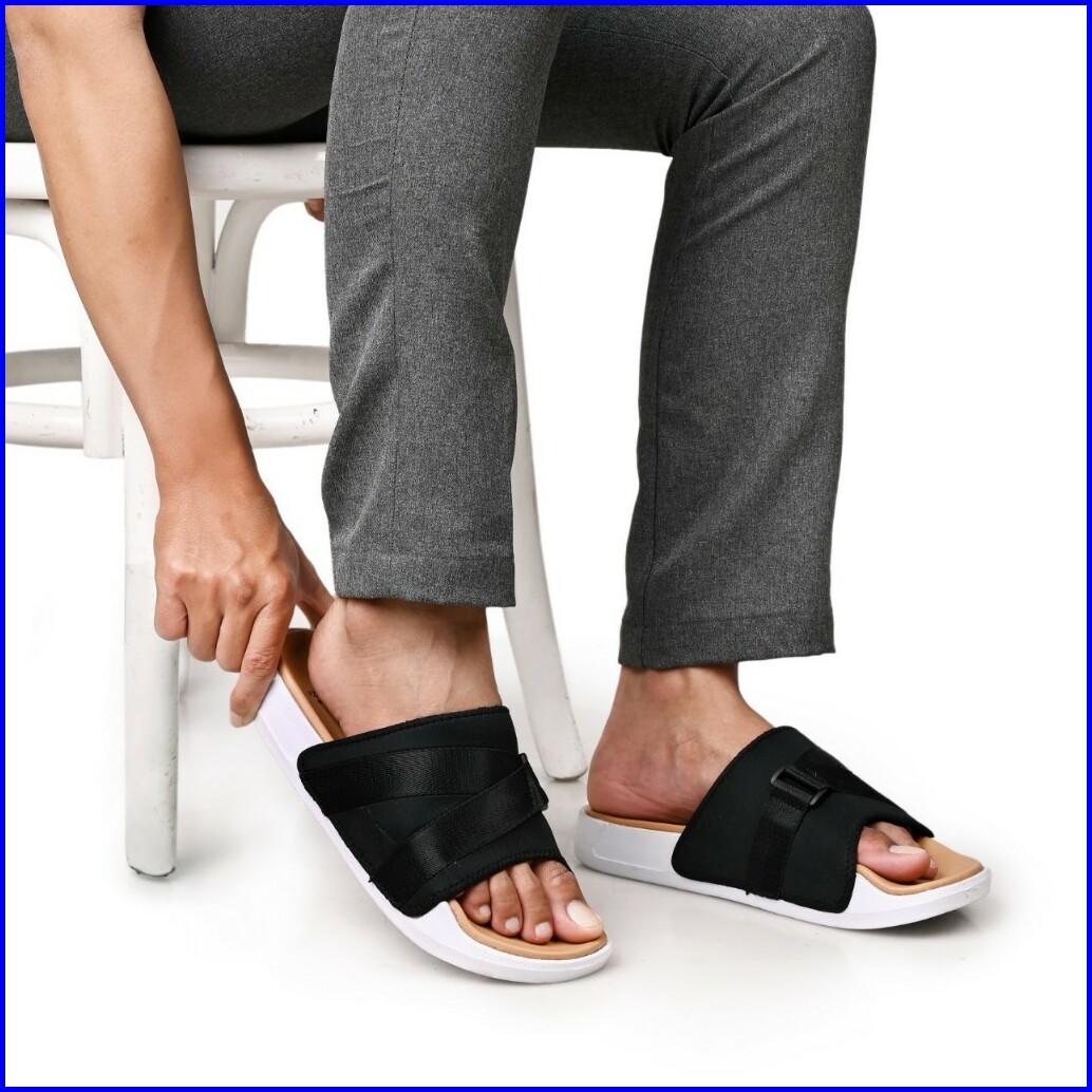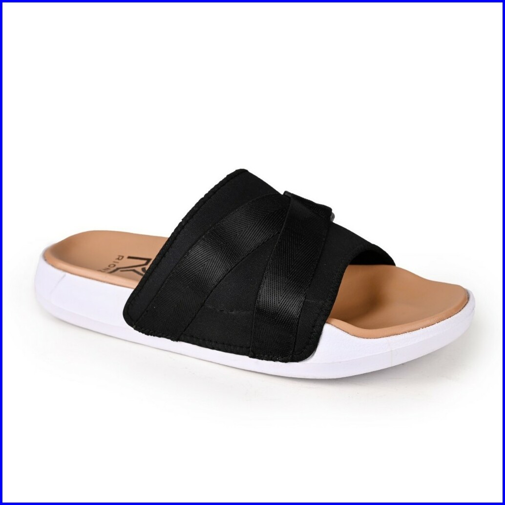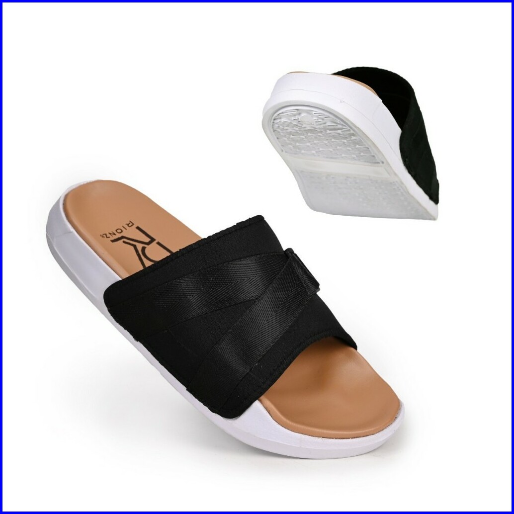 Rionz Giron Black - Sandal Pria Slide Casual Hitam Slop Murah