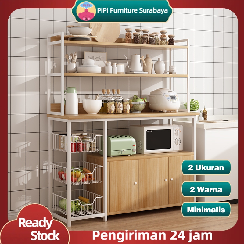 PiPi Furniture Rak Dapur / Lemari Dapur Dengan Pintu / Microwave Oven Rak / Multi-Lapisan Lemari Piring Lantai Berdiri
