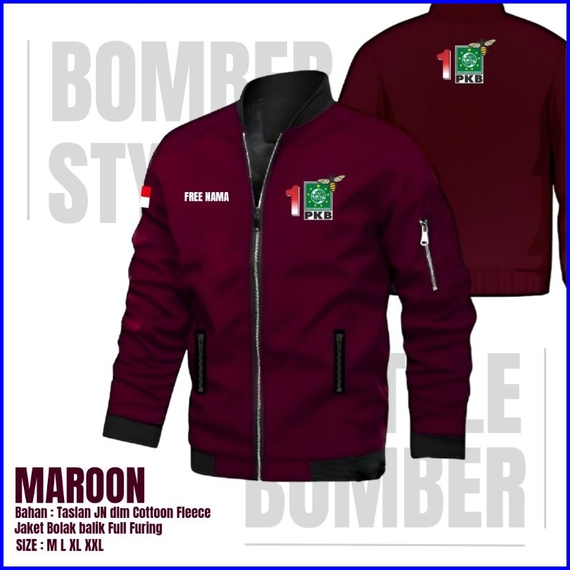 Jaket Pkb No 1 Freee Nama Terbaru Custom Bomber Waterpoof Bolak Balik Partai Sablon