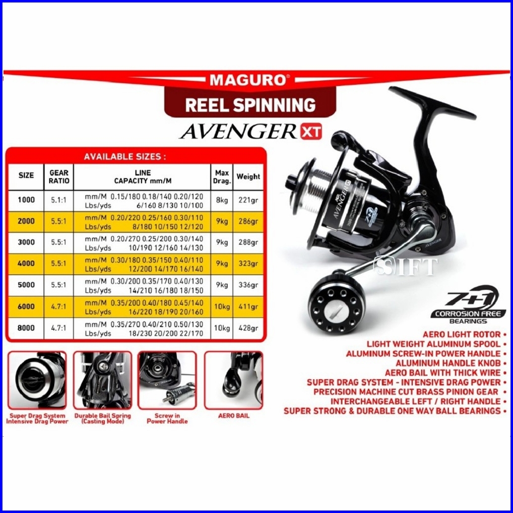 Reel Maguro Avenger Xt Power Handle 7 1 B 1000 Sd 8000 Kolam Sungai Danau Muara Laut Ift