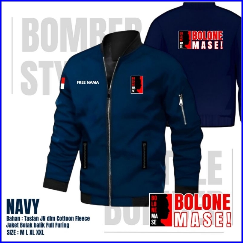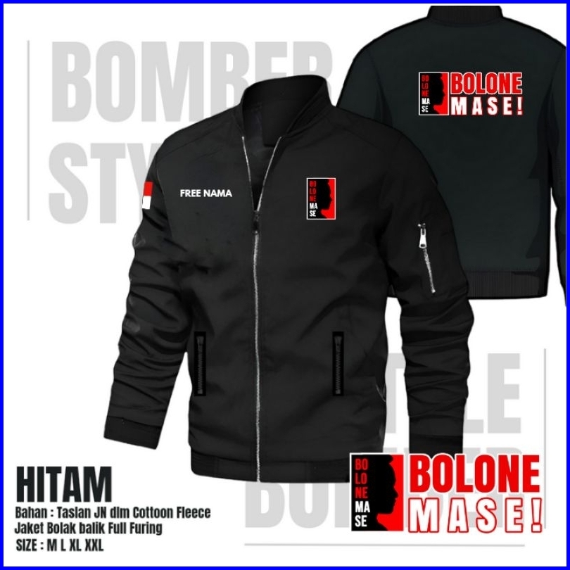 Jaket Bolone Mase Free Nama Relawan Bomber Waterproof Bolak Balik Custom Sablon Terbaru