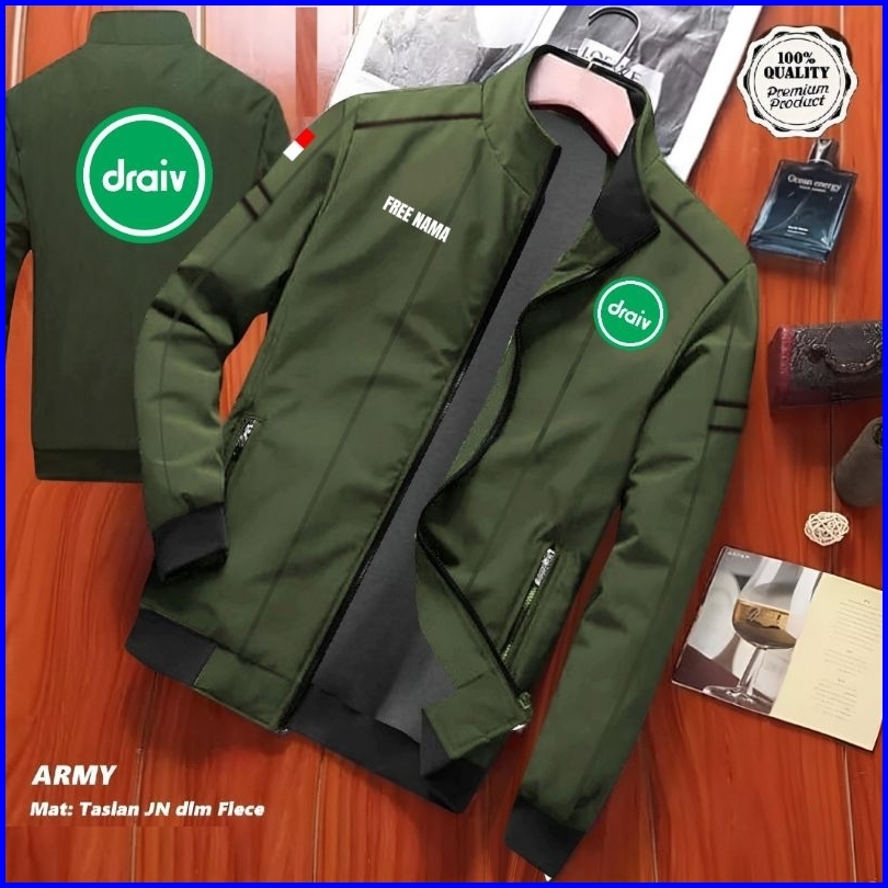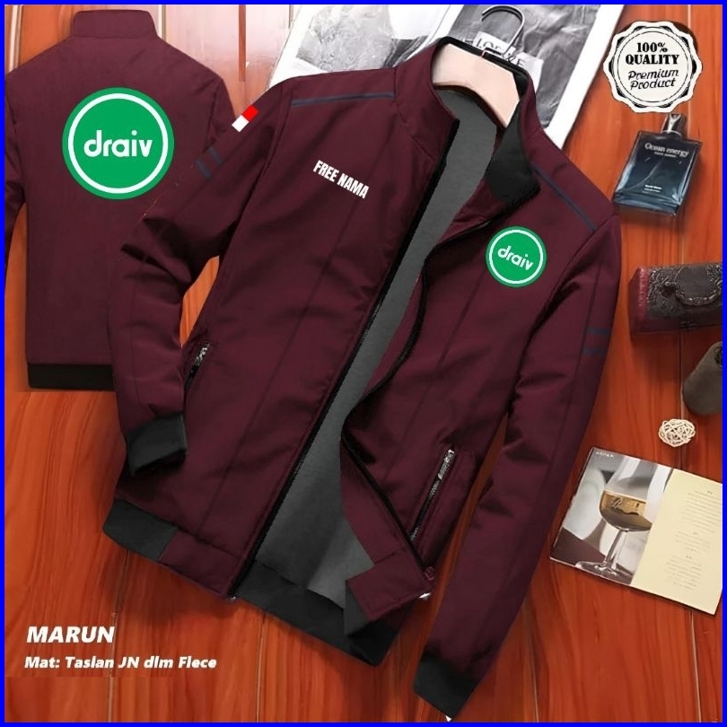 Jaket Draiv Free Nama Custom Bolak Balik Pria Wanita Waterproof Sablon Terbaru