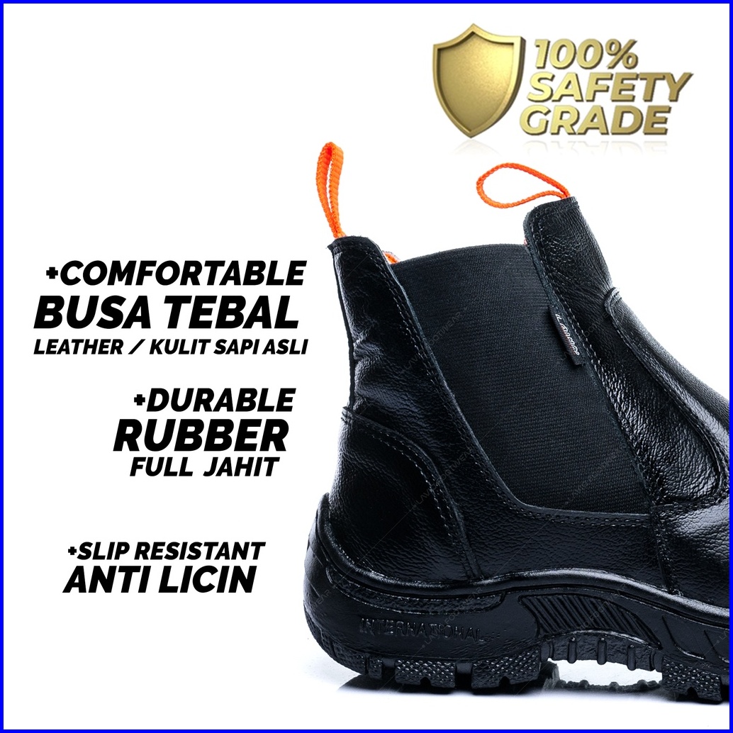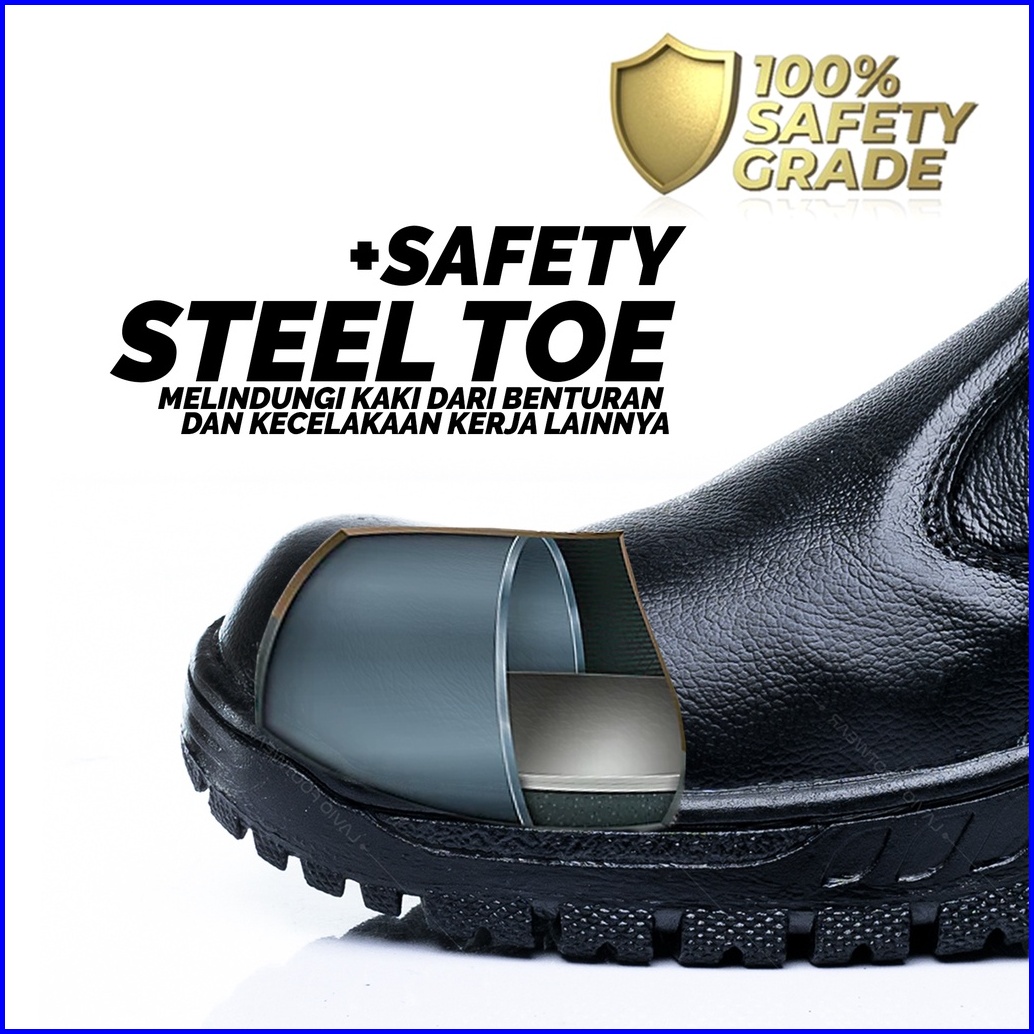 Lavio Sepatu Safety Proyek Bangunan Kitchen Jalan Kuat Garansi Original Boots Hitam Original Viora Slop Tanpa Tali Ujung