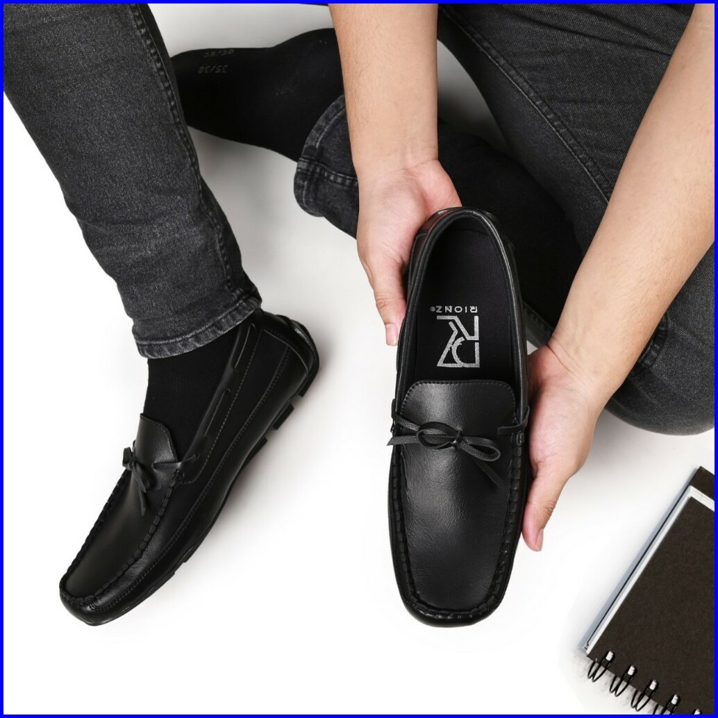 Rionz Yukiro Black - Sepatu Casual Slip On Mules Pria Formal Hitam Kulit Pu