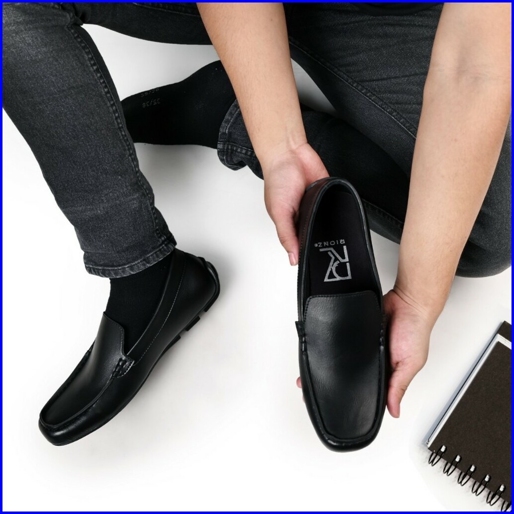 Rionz Kean Black - Sepatu Casual Slip On Mules Pria Formal Hitam Kulit Pu