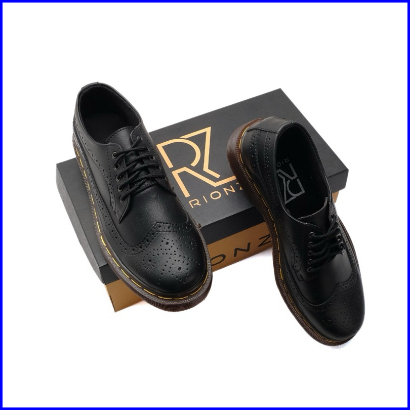 Rionz Misaki Black - Sepatu Formar Pria Pantofel Hitam Kantor Kulit Pu