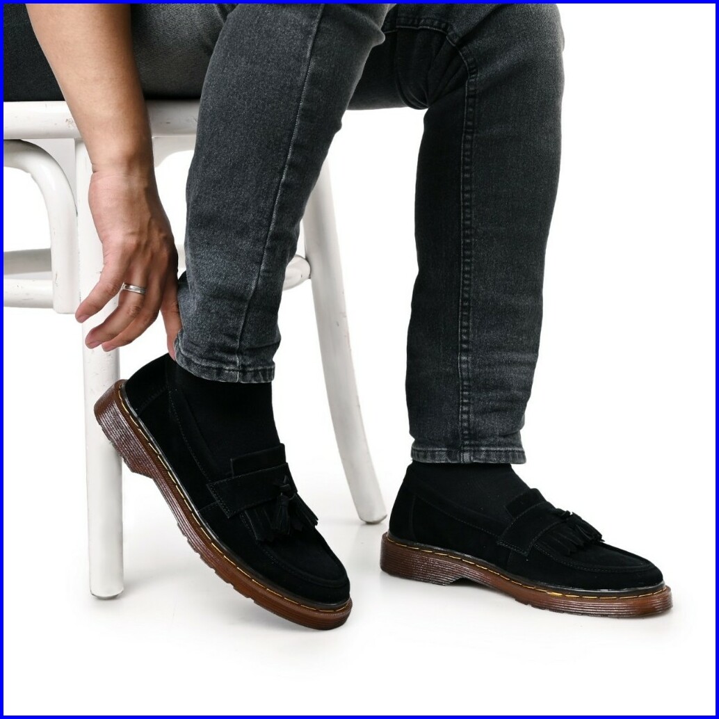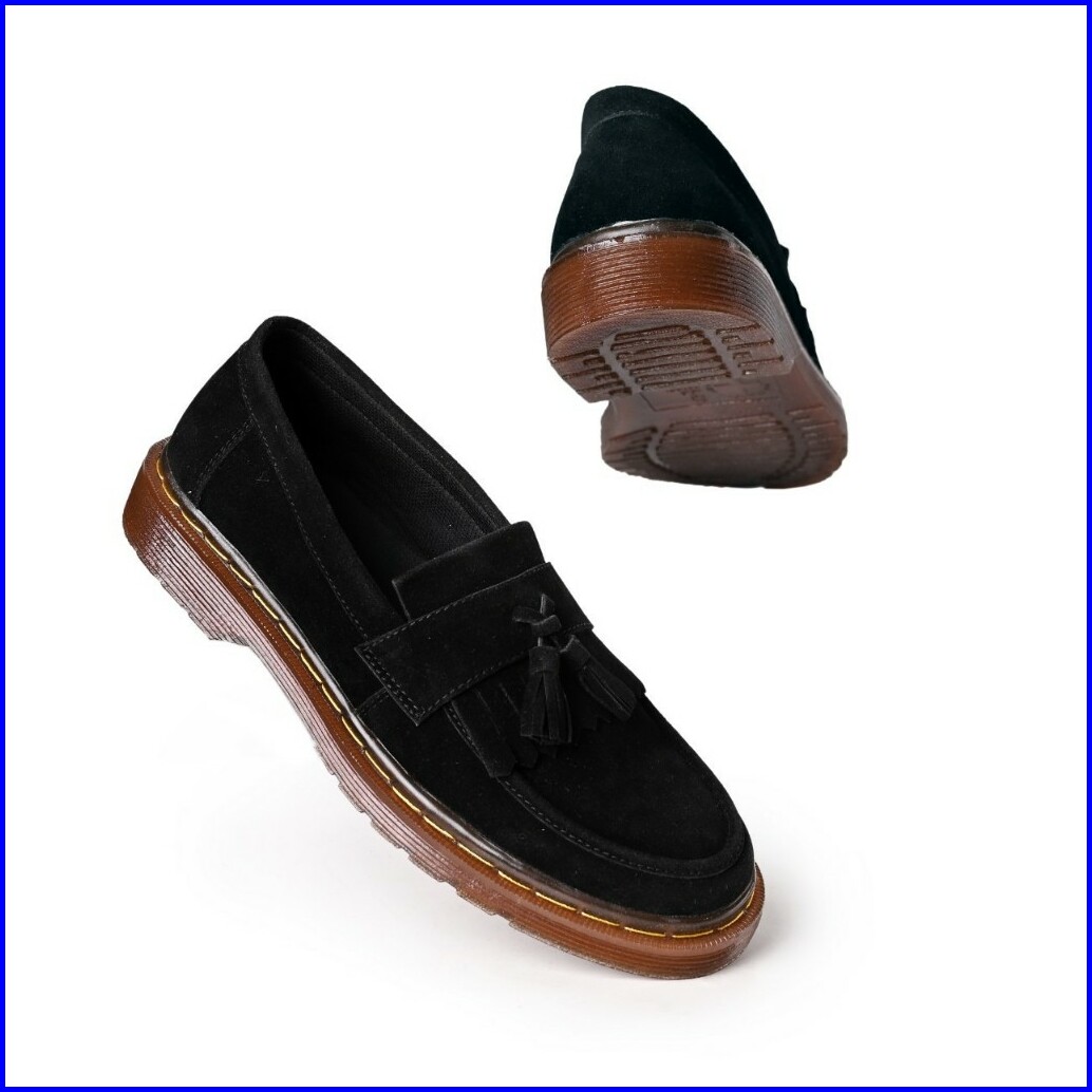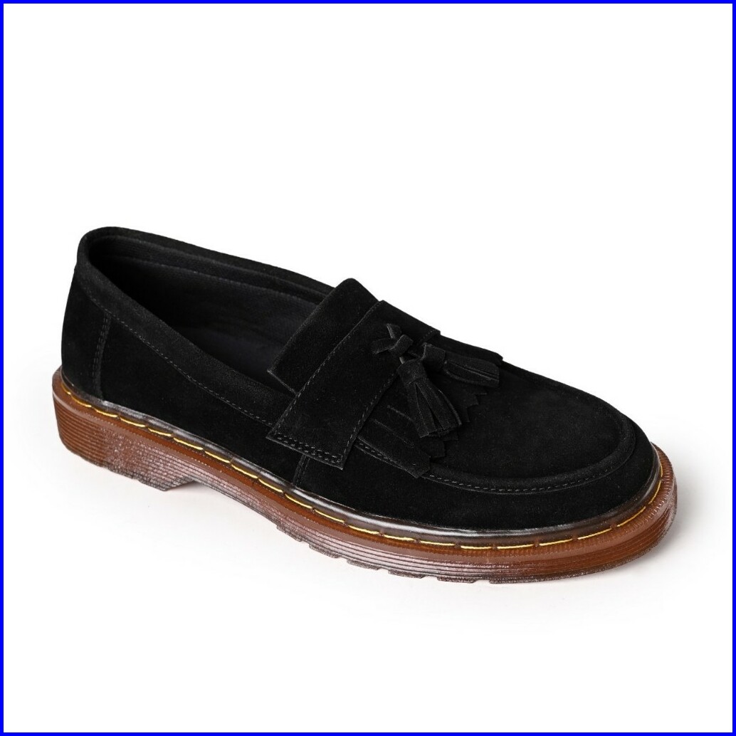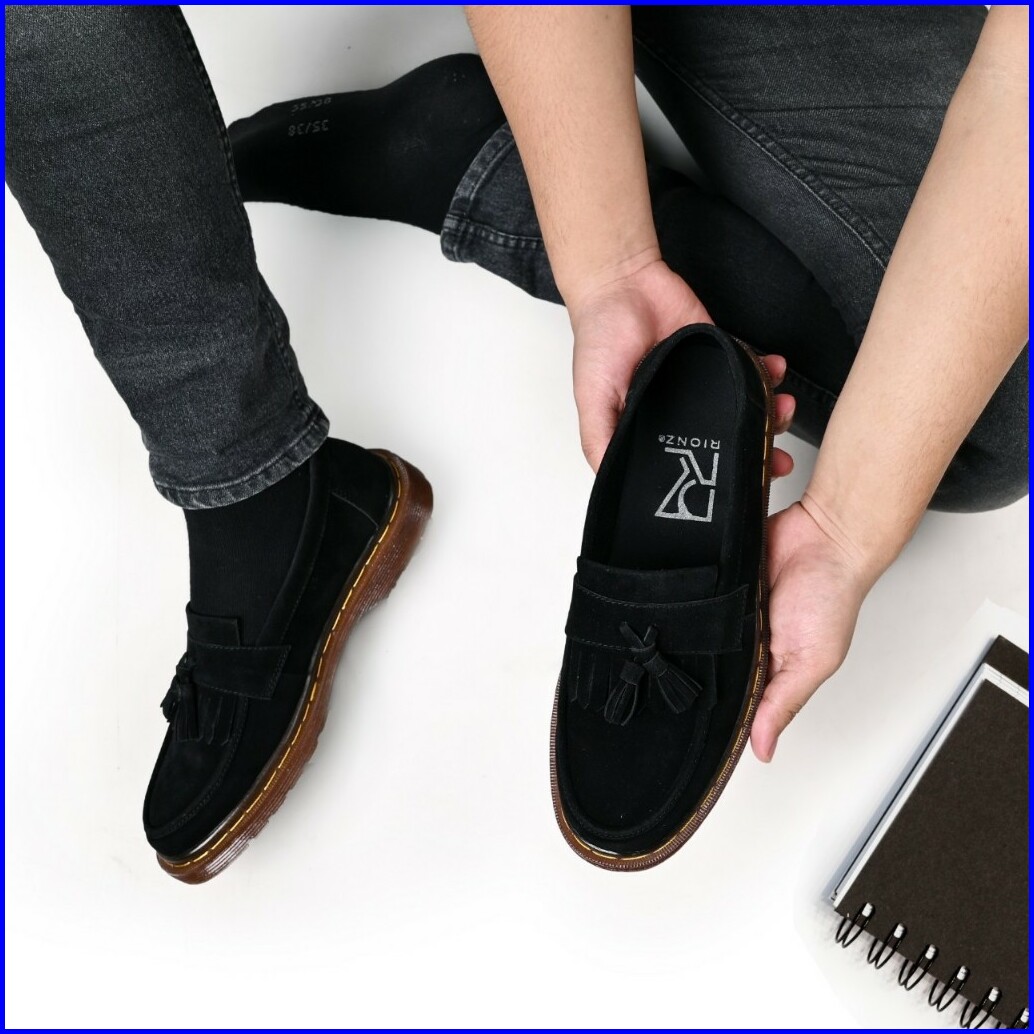 Rionz Alonso Black - Sepatu Pria Loafer Formal Hitam Casual Kantor Kuliah Suede