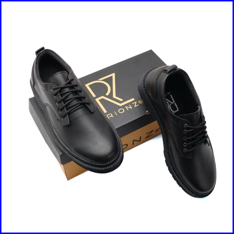 Rionz Milano Black - Sepatu Formal Pria Pantofel Hitam Kantor Kulit Pu