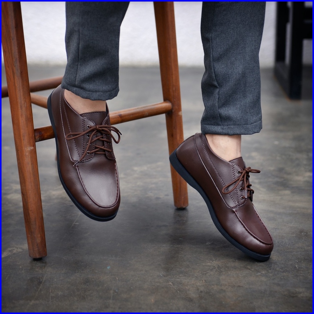 Rionz Arsen - Sepatu Pantofel Pria Kantor Formal Tali Hitam Coklat