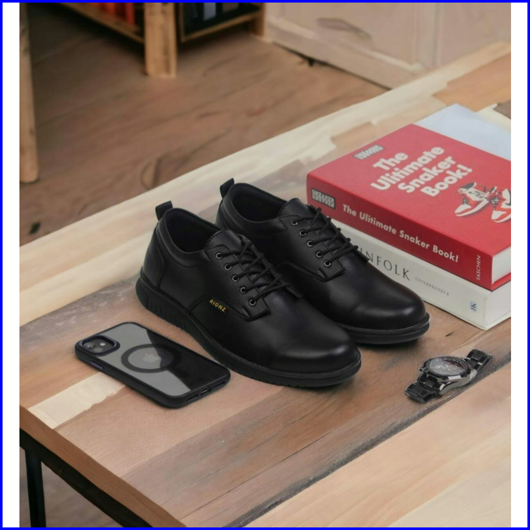 Rionz - Patric Black - Sepatu Formal Pria Pantofel Tali Hitam Kantor
