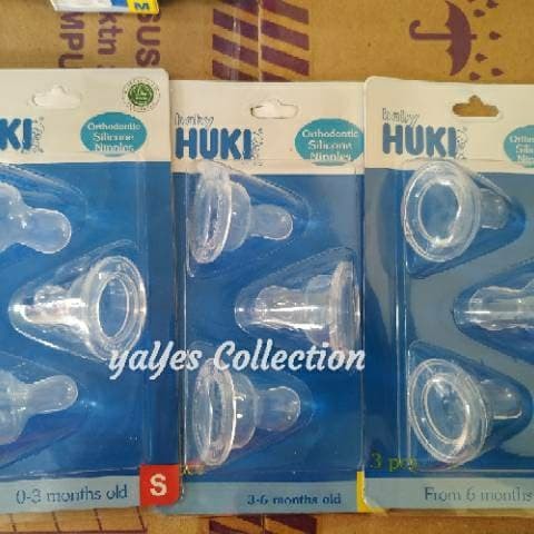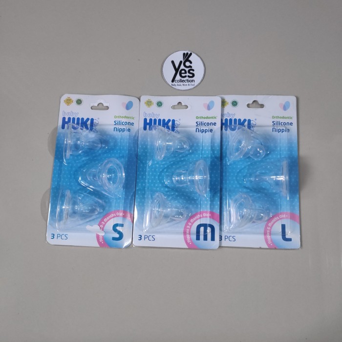 HUKI DOT GEPENG 3 SIZE S - M - L SILLICONE NIPPLE BAYI 0 - 6 BULAN - ISI 2 M