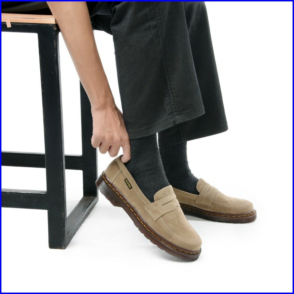 Rionz Xabi Cream - Sepatu Pria Loafer Formal Casual Kantor Kuliah Suede