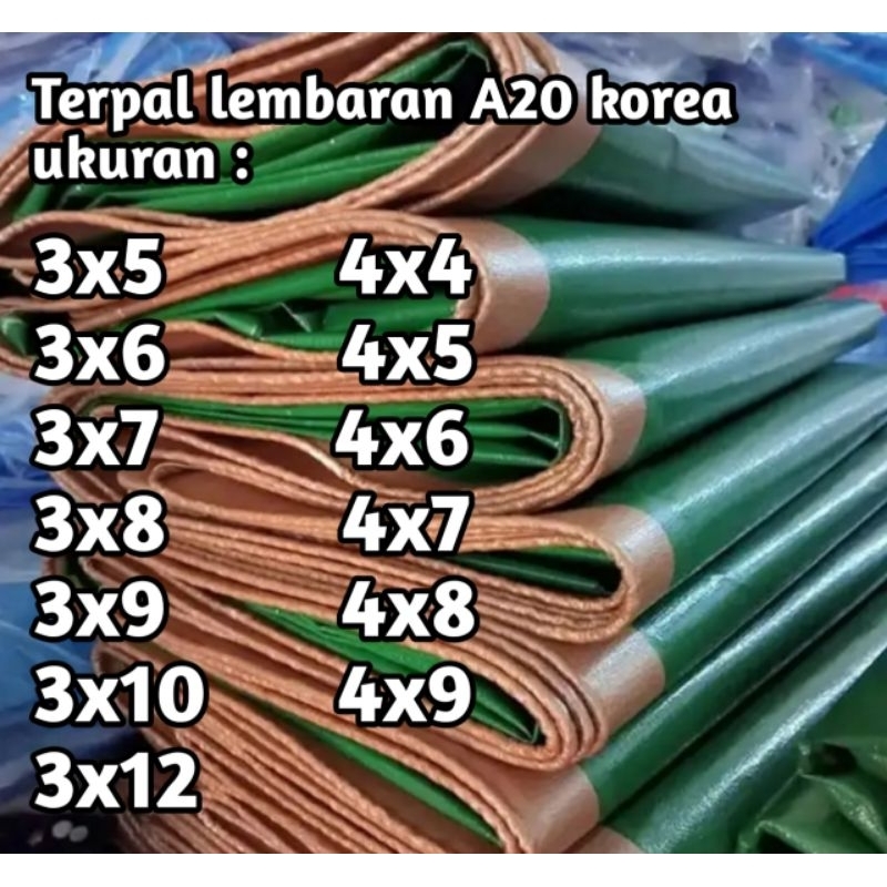 Terpal lembaran A20 ukuran 3x5 3x6 3x7 3x8 3x9 3x10 3x12 4x4 4x5 4x6 4x7 4x8 4x9