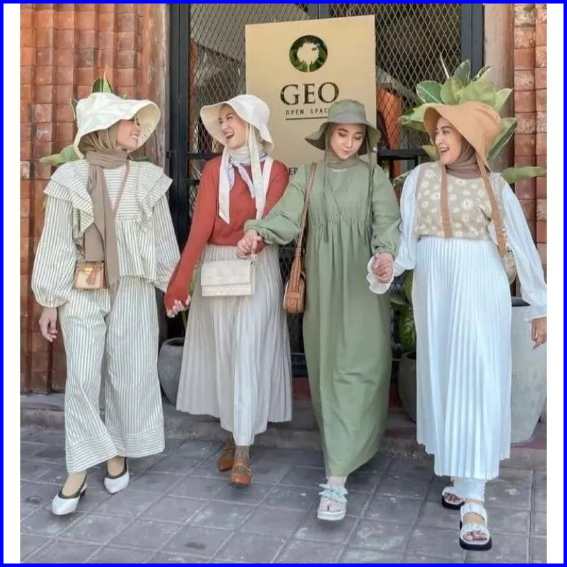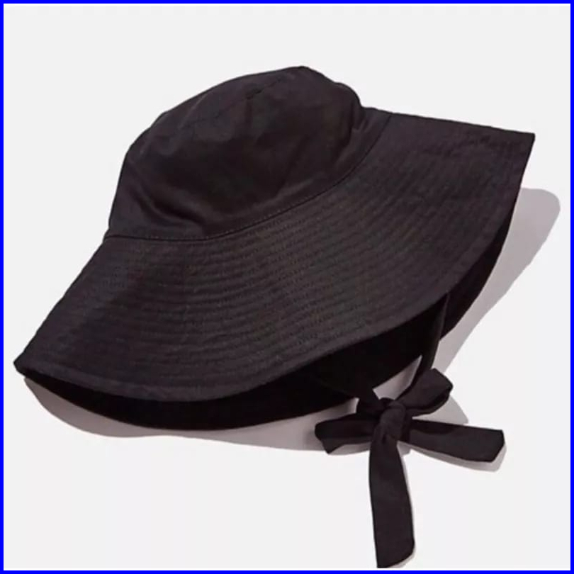 Trendy Lebaran Topi Wanita Dewasa Bucket Hat Wide Lebar Tali Panjang